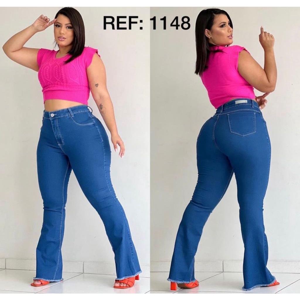 Calça Flare Boca de Sino Plus Size Bailarina Jeans Feminina Linha Premium