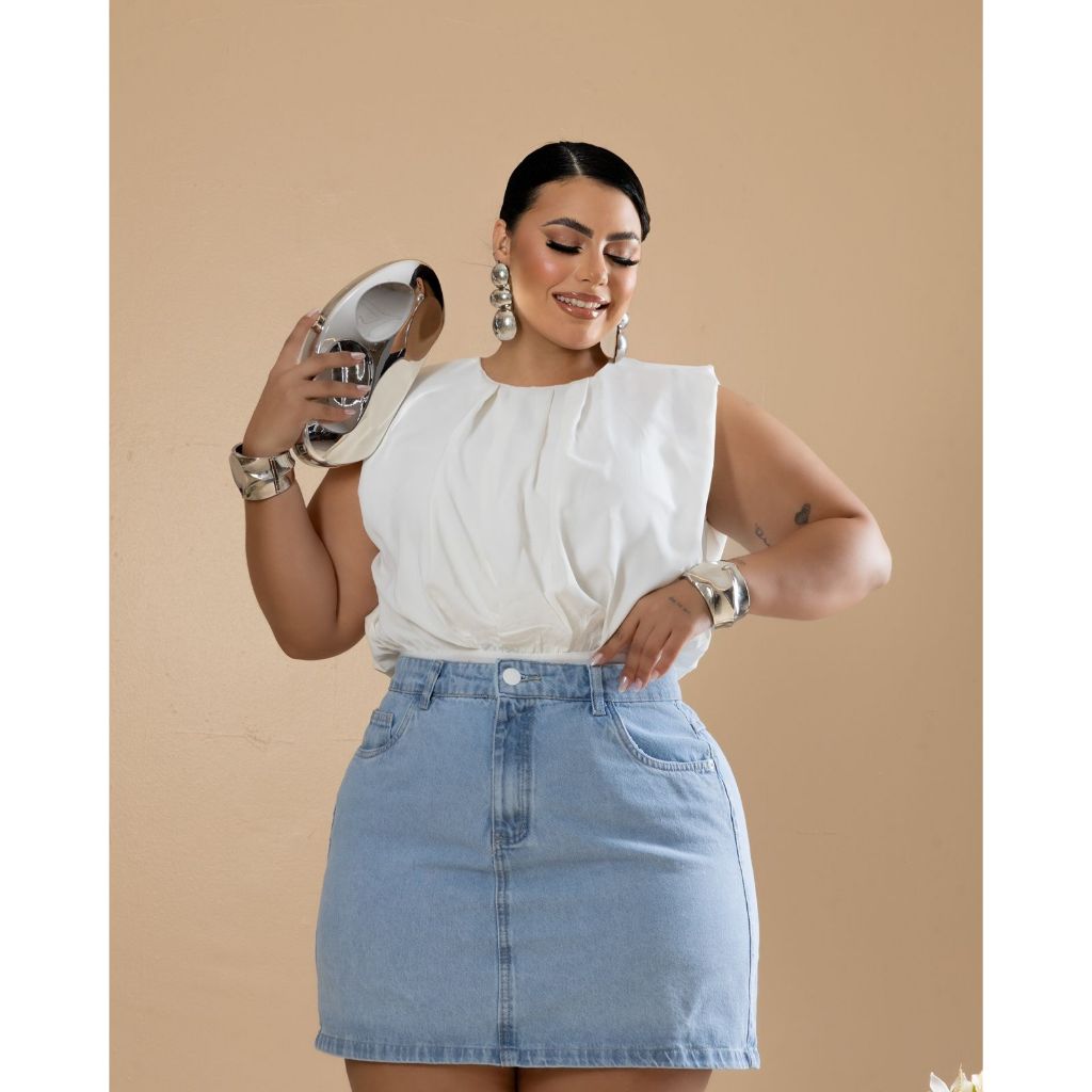 Saia Jeans Feminina Plus Size Lavagem Clara