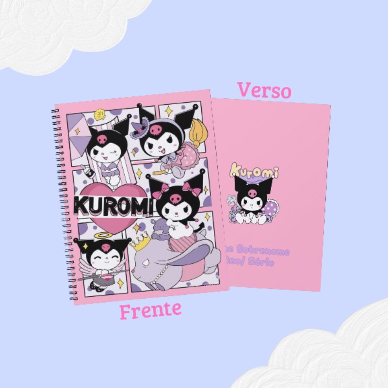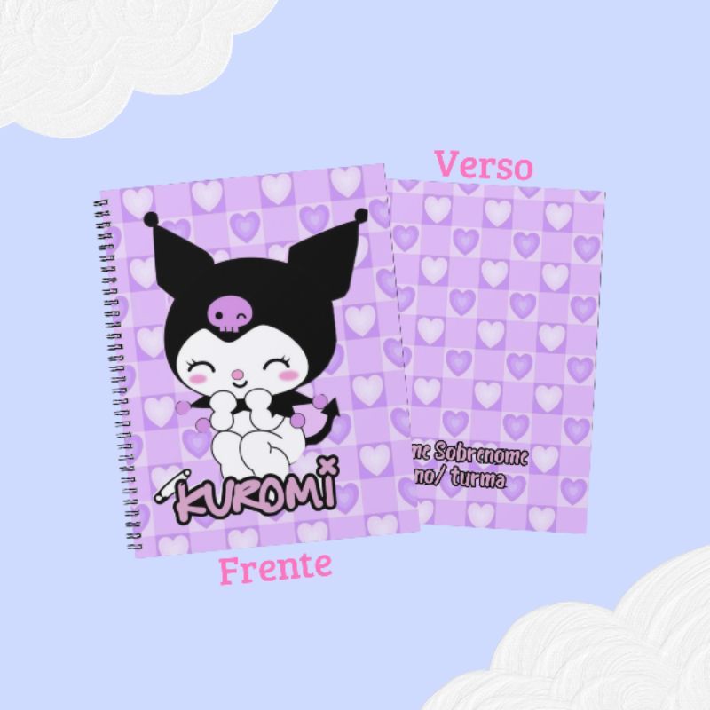 Caderno grande personalizado 96 folhas Kuromi Sanrio Hello kitty material escolar menina