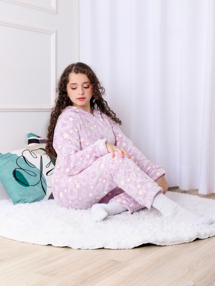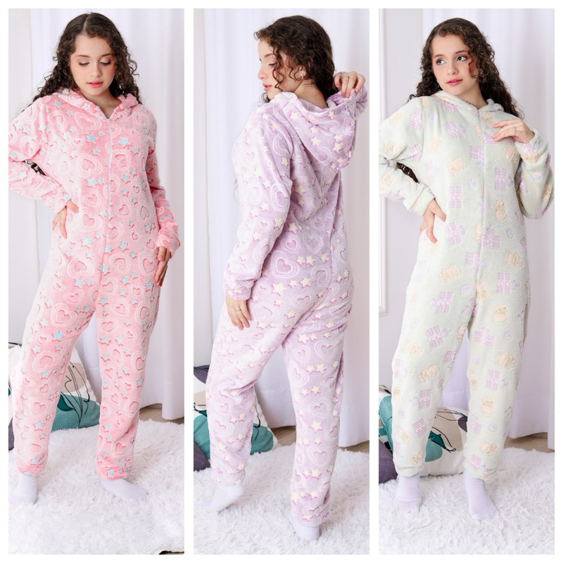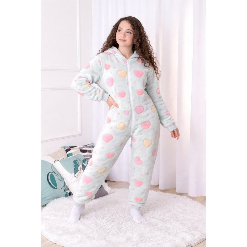 Pijama Infantil Macacão de Inverno Plush Estampado com Capuz e Zíper Quentinho Estampa variedades 2 ao 16