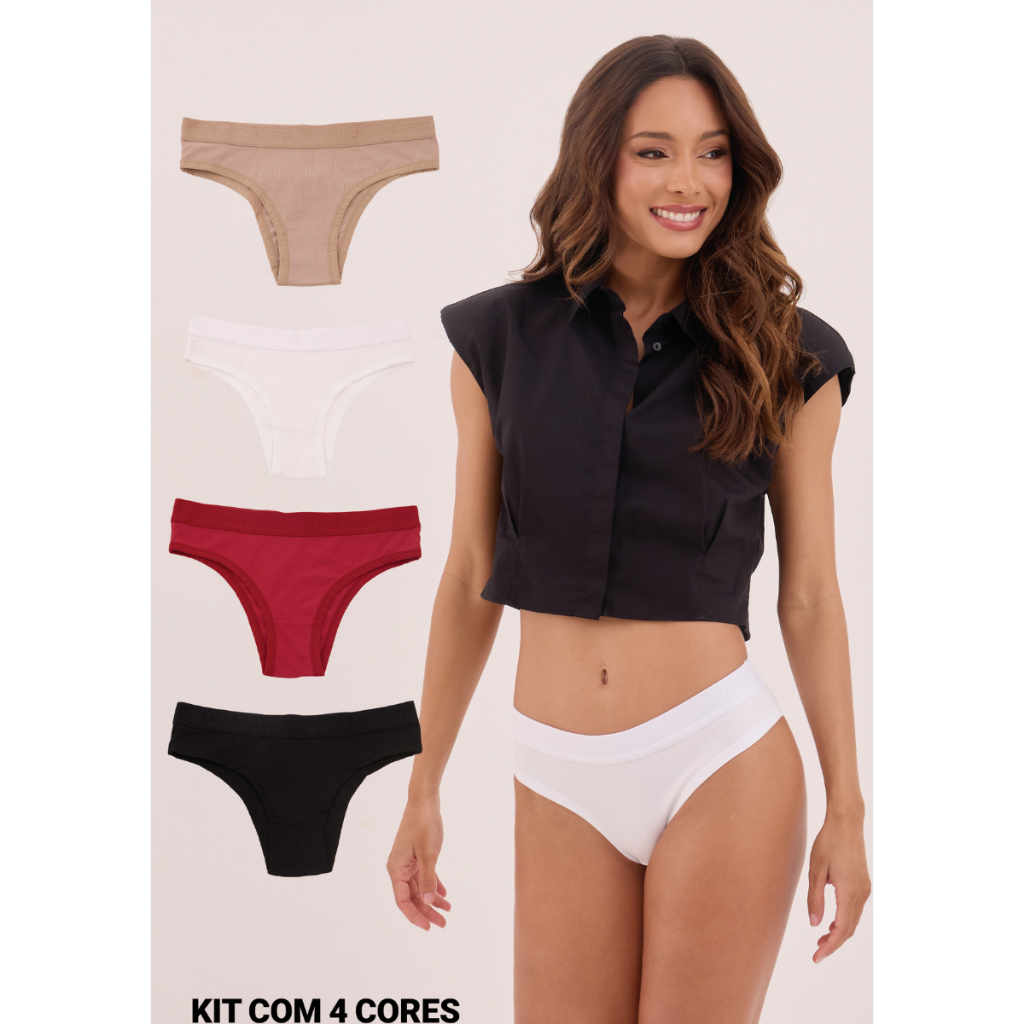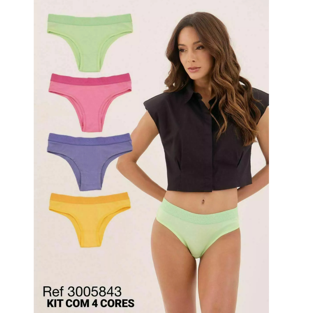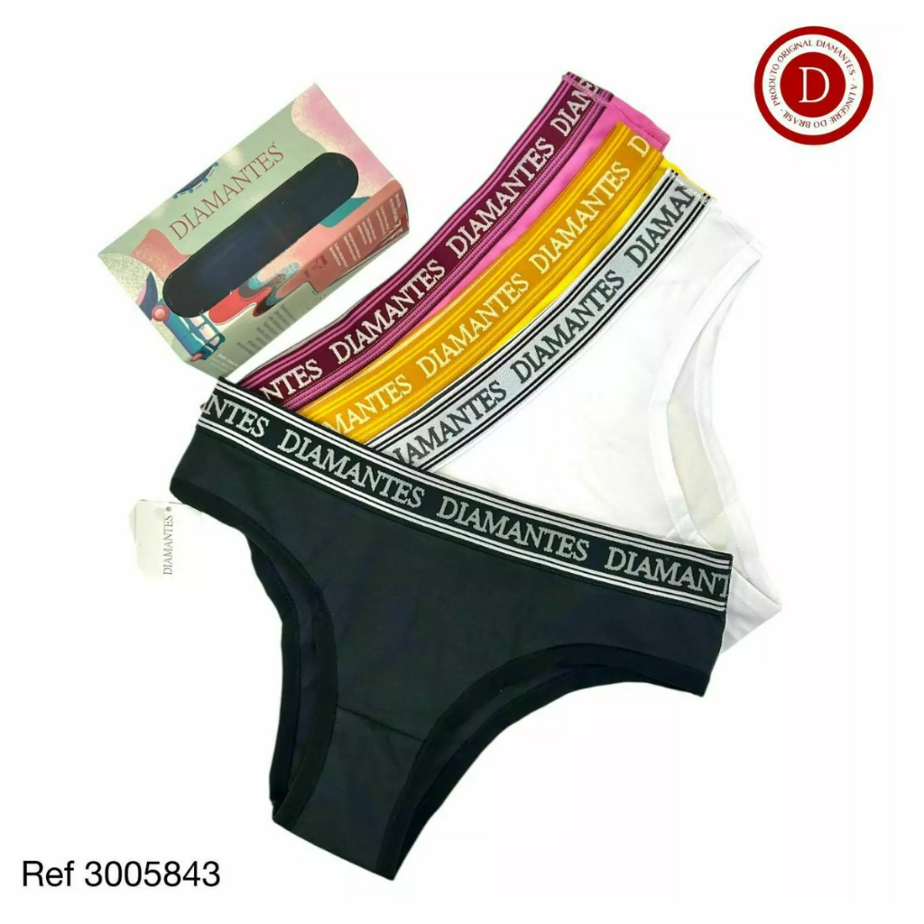KIT COM 4 CALCINHAS BIQUINI DE COTTON-ALGODÃO CÓS PERSONALIZADO DIAMANTES LINGERIE