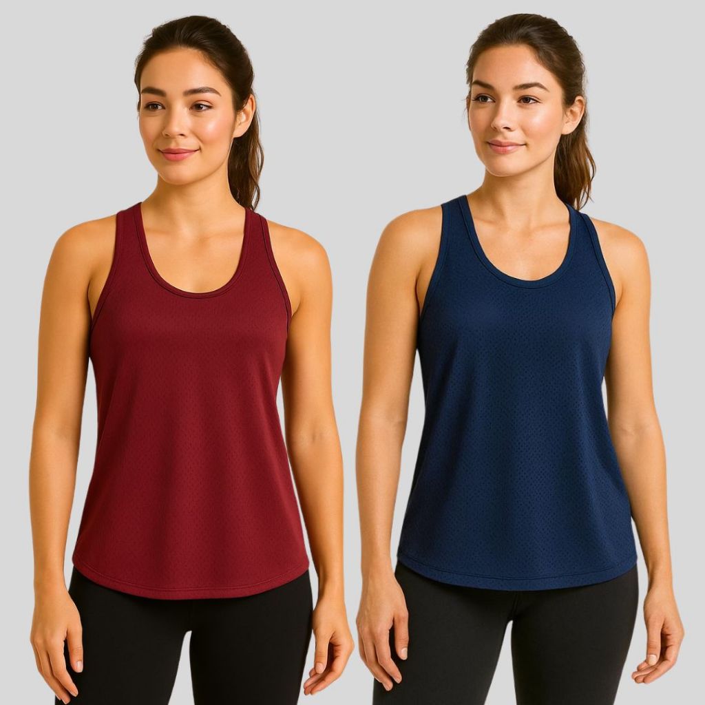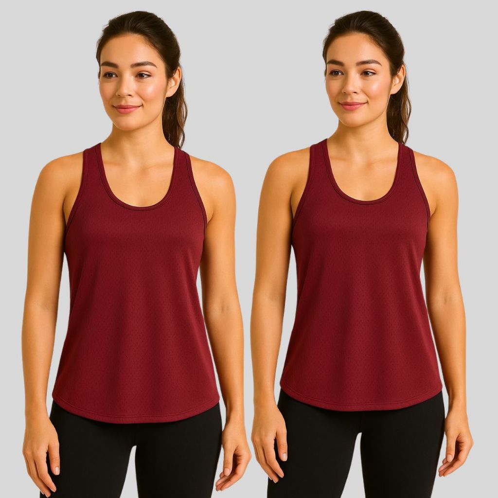 Kit 2 Regatas Fitness Feminina - Camiseta Básica Academia Dry Furadinha