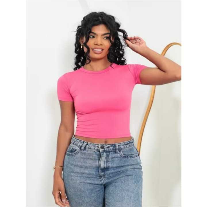 blusa Baby look Feminina Manga Curta Baby Tee Slim Fit