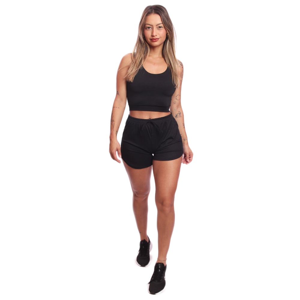 Kit 3 Shorts Feminino Malha Canelada Confortável Casual