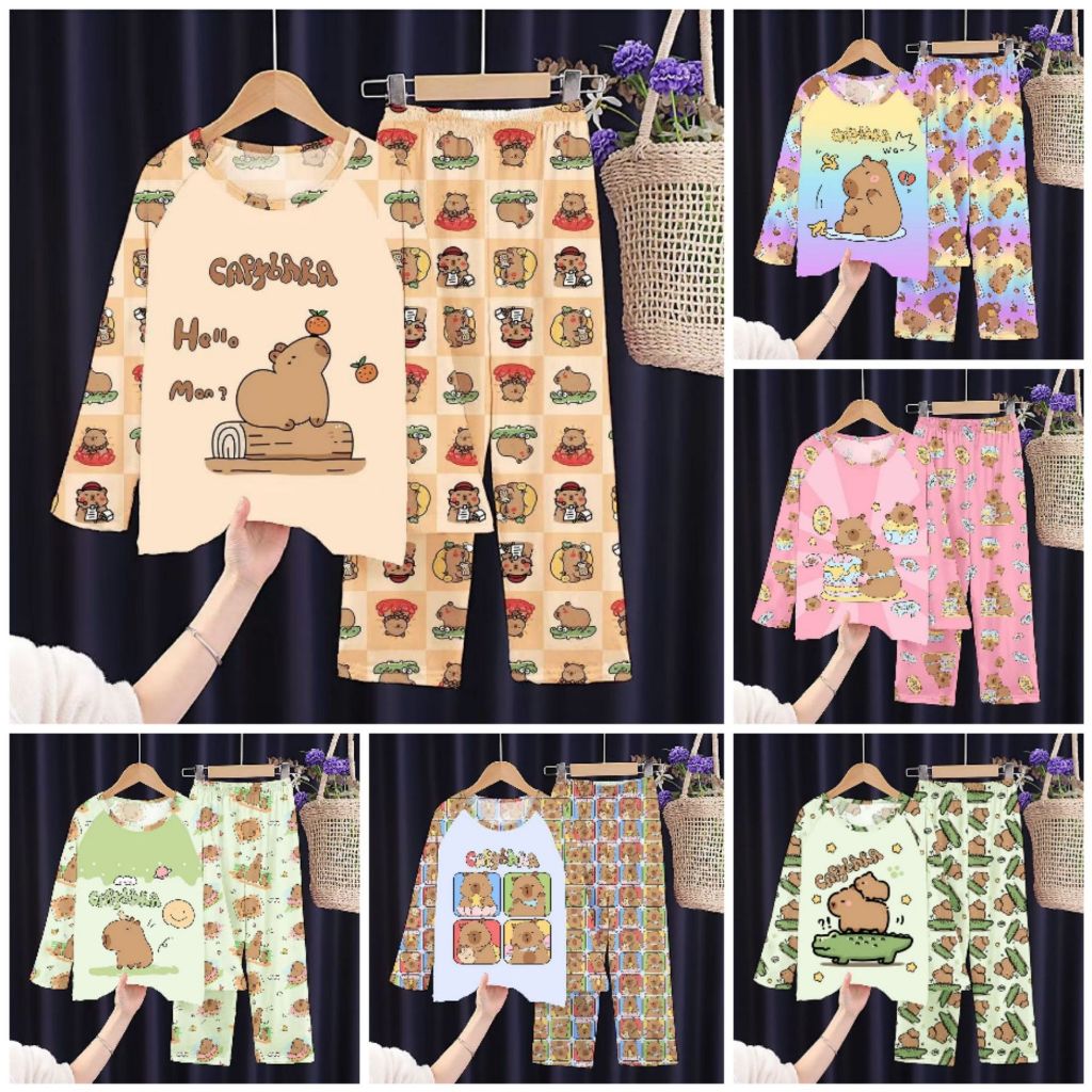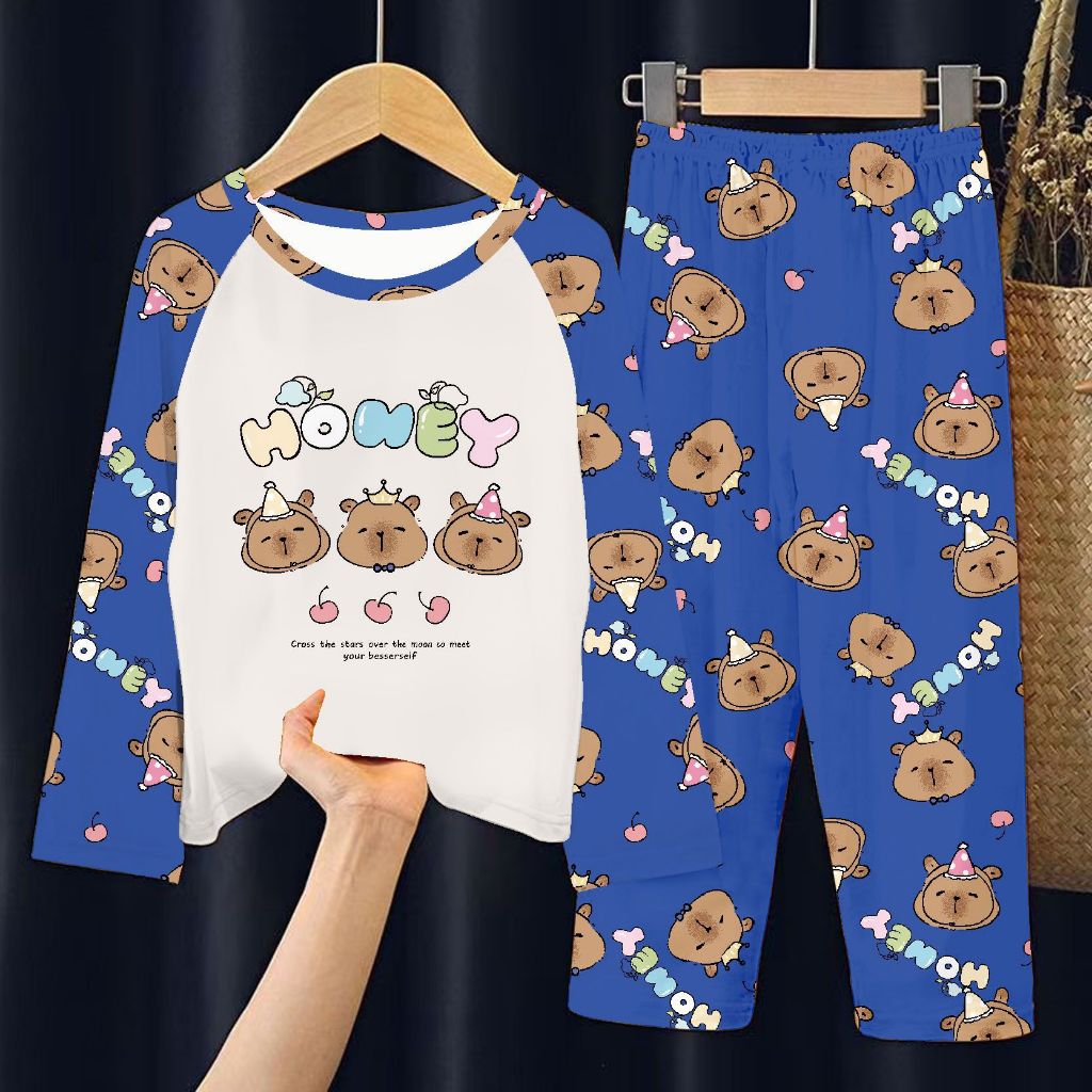 Crianças Pijamas Capivara Impressão Dos Desenhos Animados Criança Primavera Outono Calças De Manga Longa Conjunto Adoles