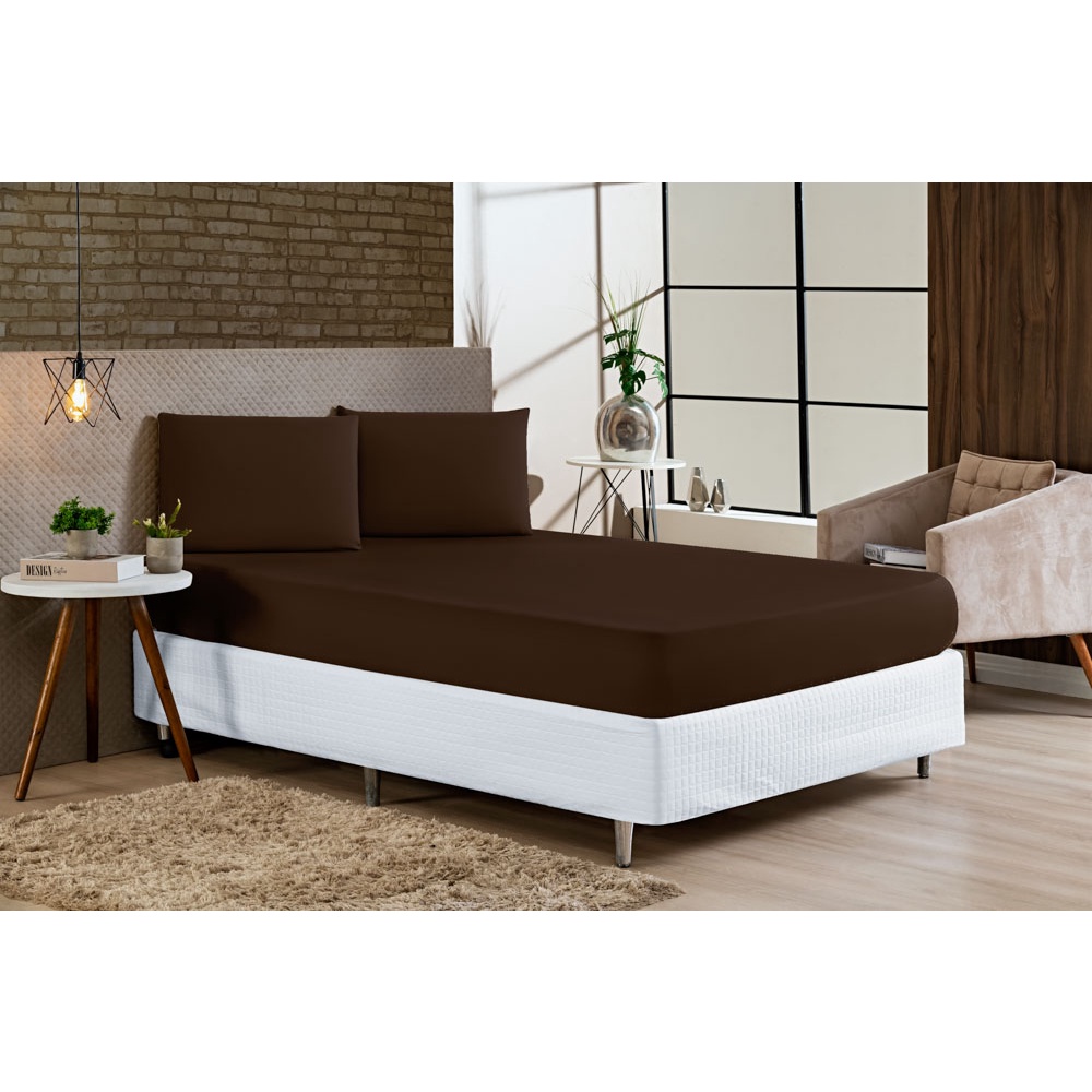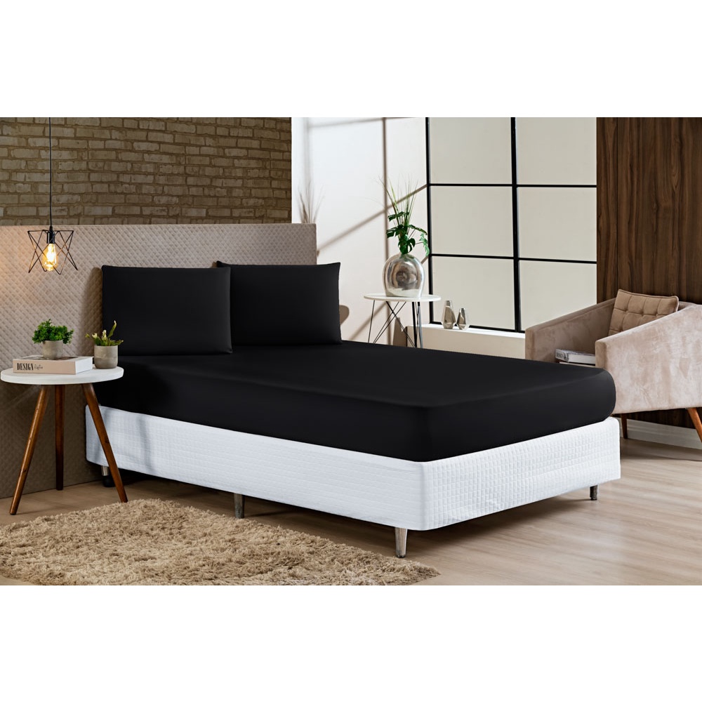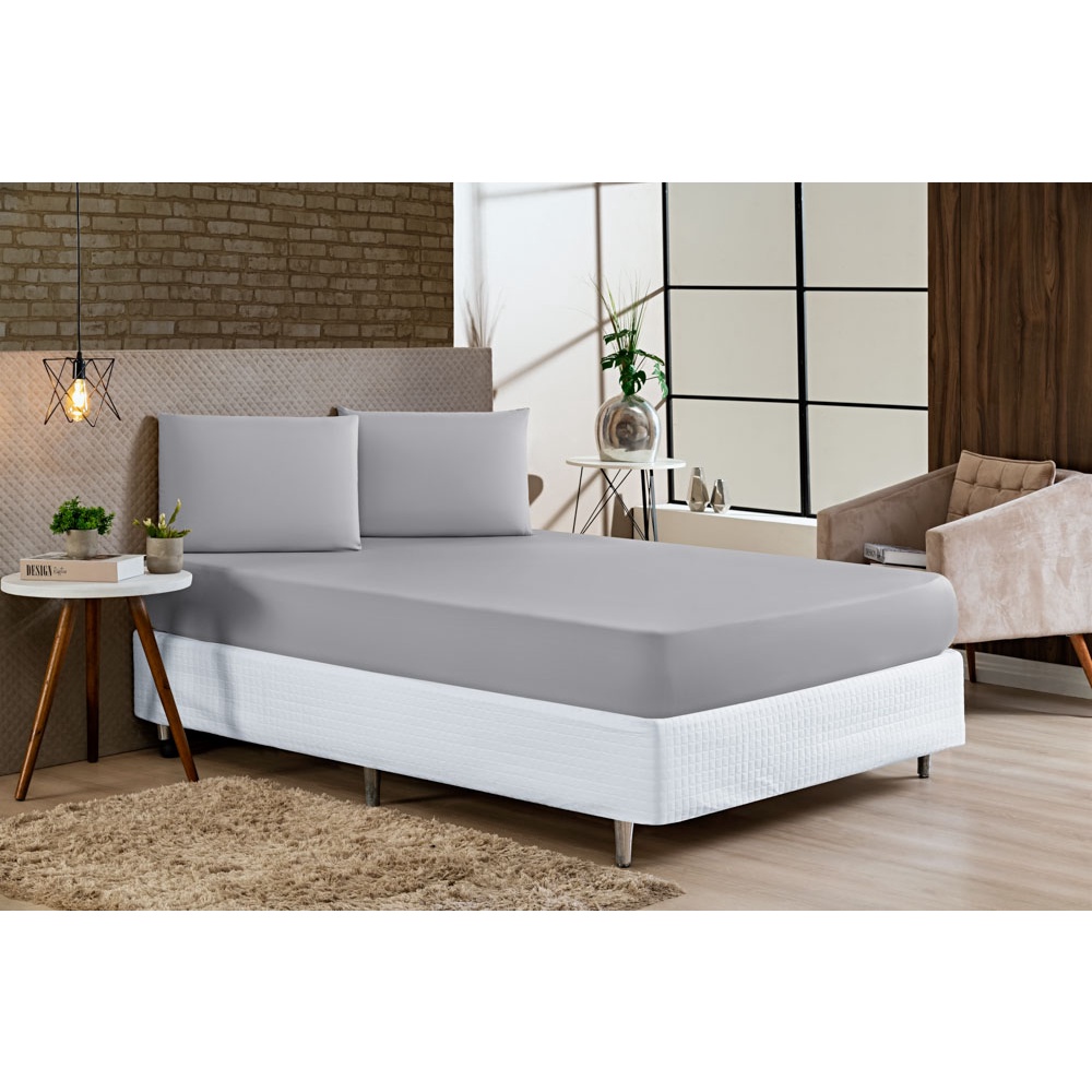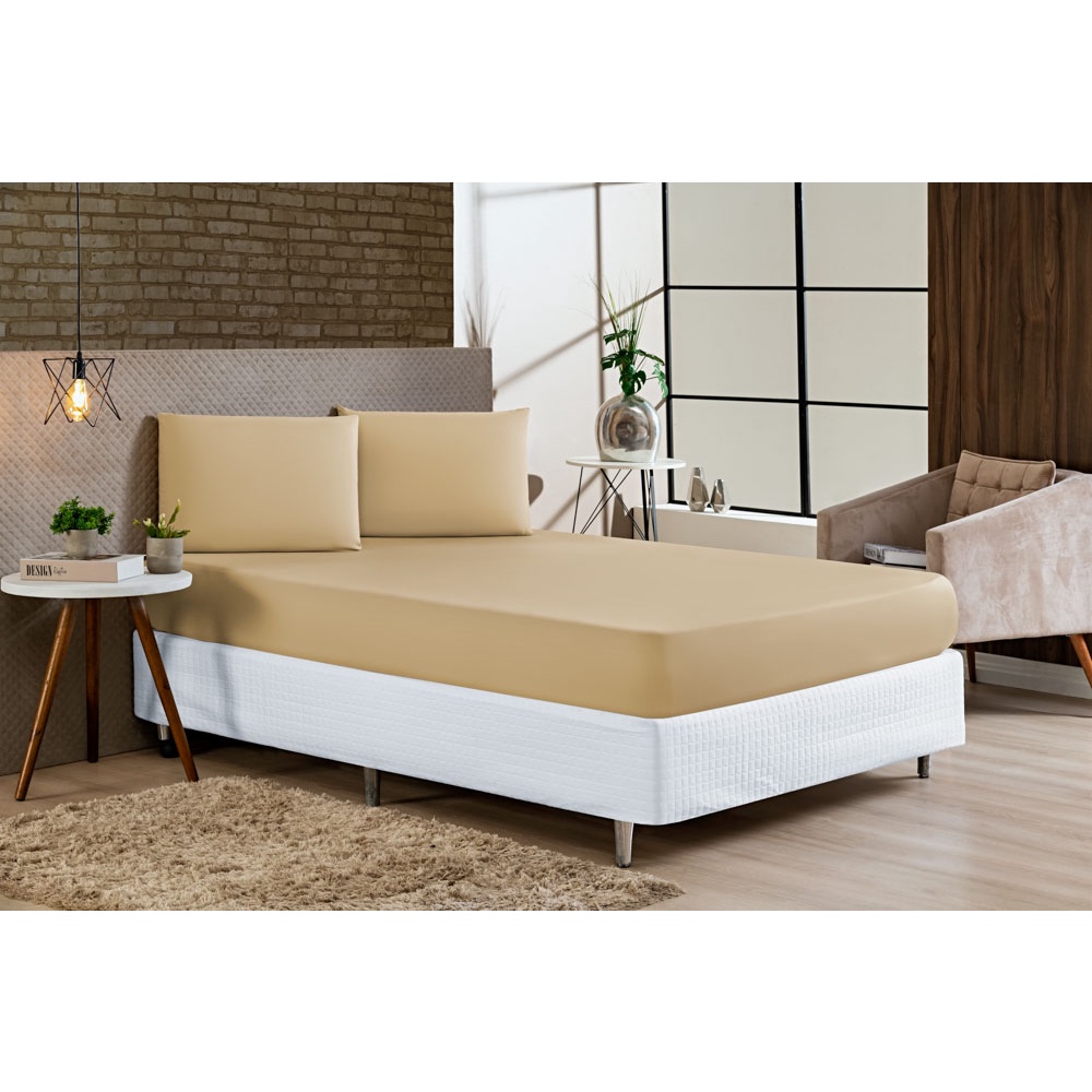 Lençol Casal Padrão Avulso Liso Com Elástico a Volta Toda