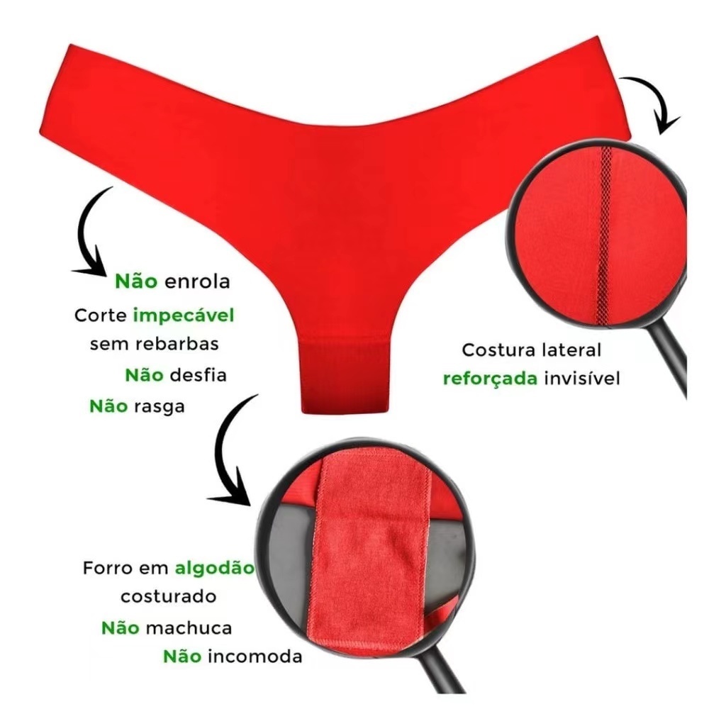Kit De Calcinhas Tanga Sem Costura Corte A Laser Cores variadas