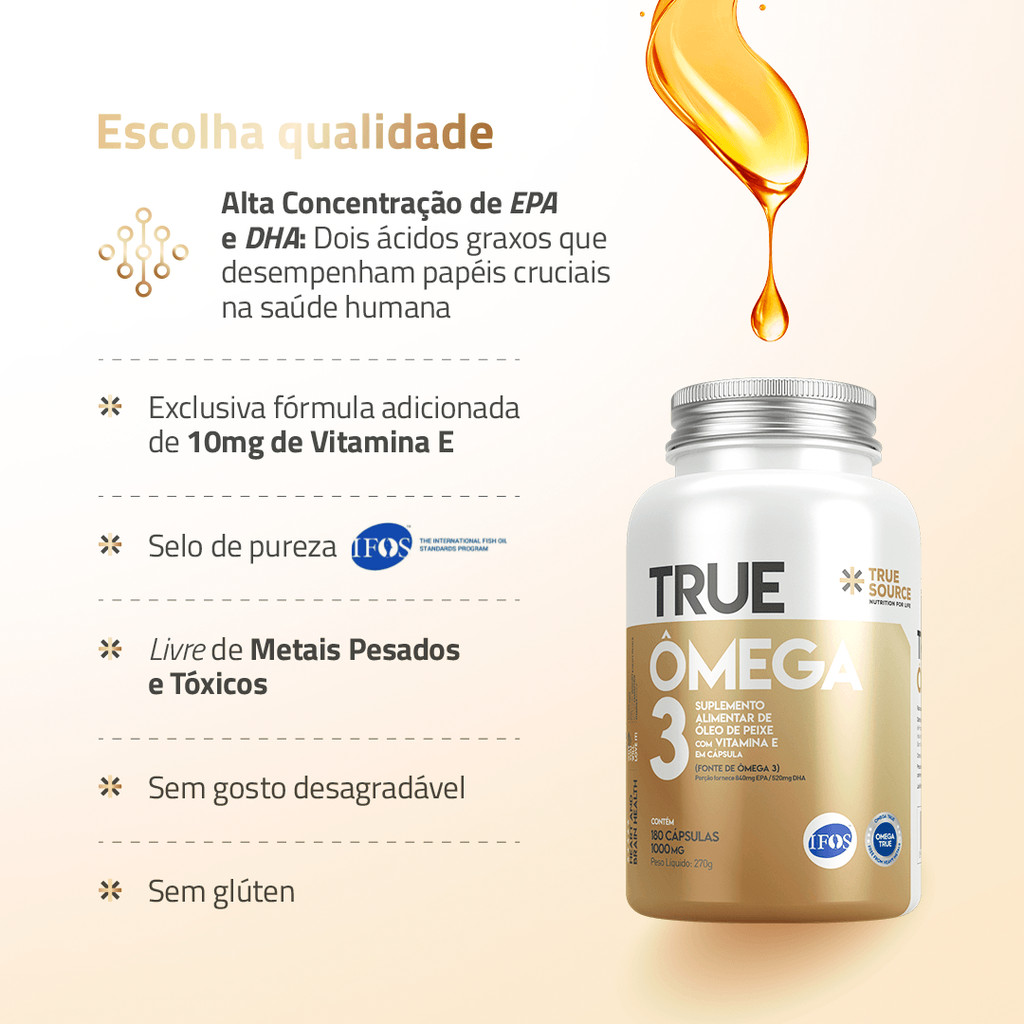 True Ômega 3 Com Vitamina E 180 Cápsulas True Source