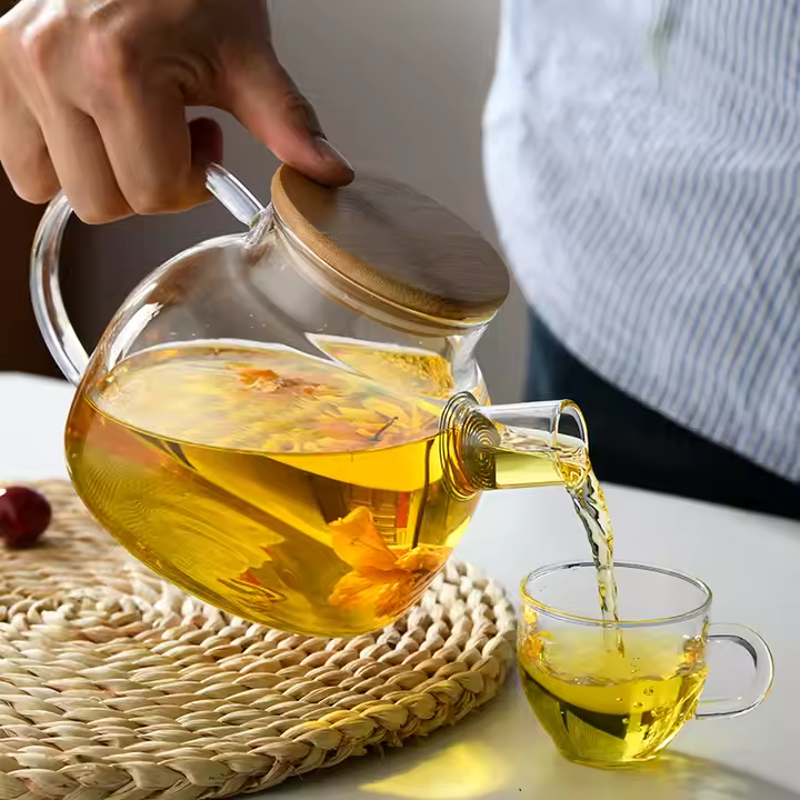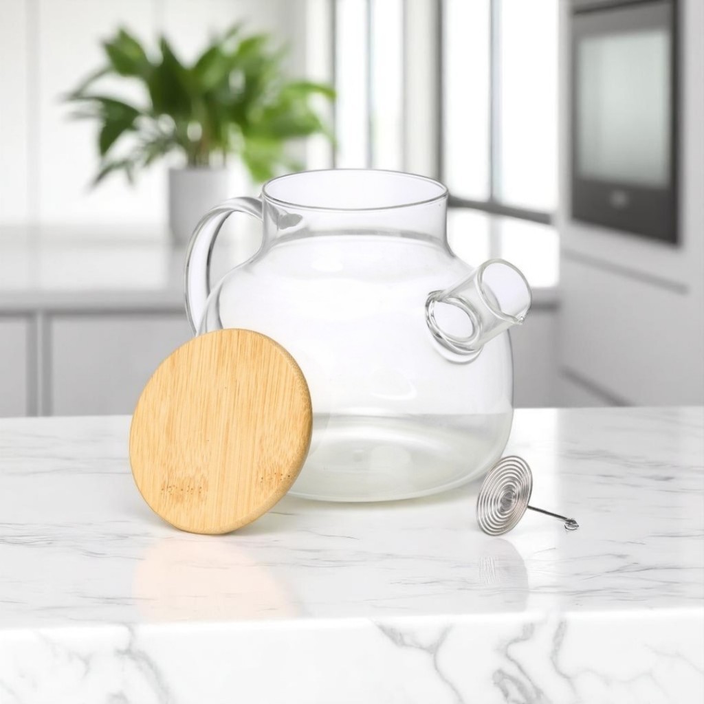 Chaleira de Vidro Borossilicato 1L Com Infusor Inox Removivel Resistente ao Fogo Chá Café Bebidas