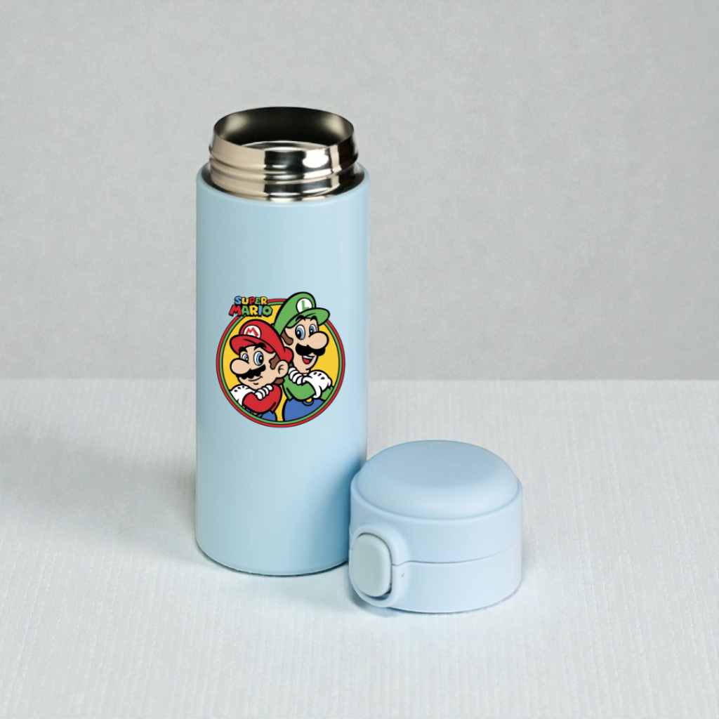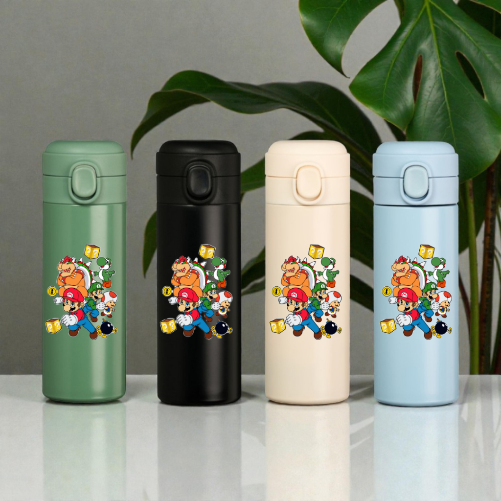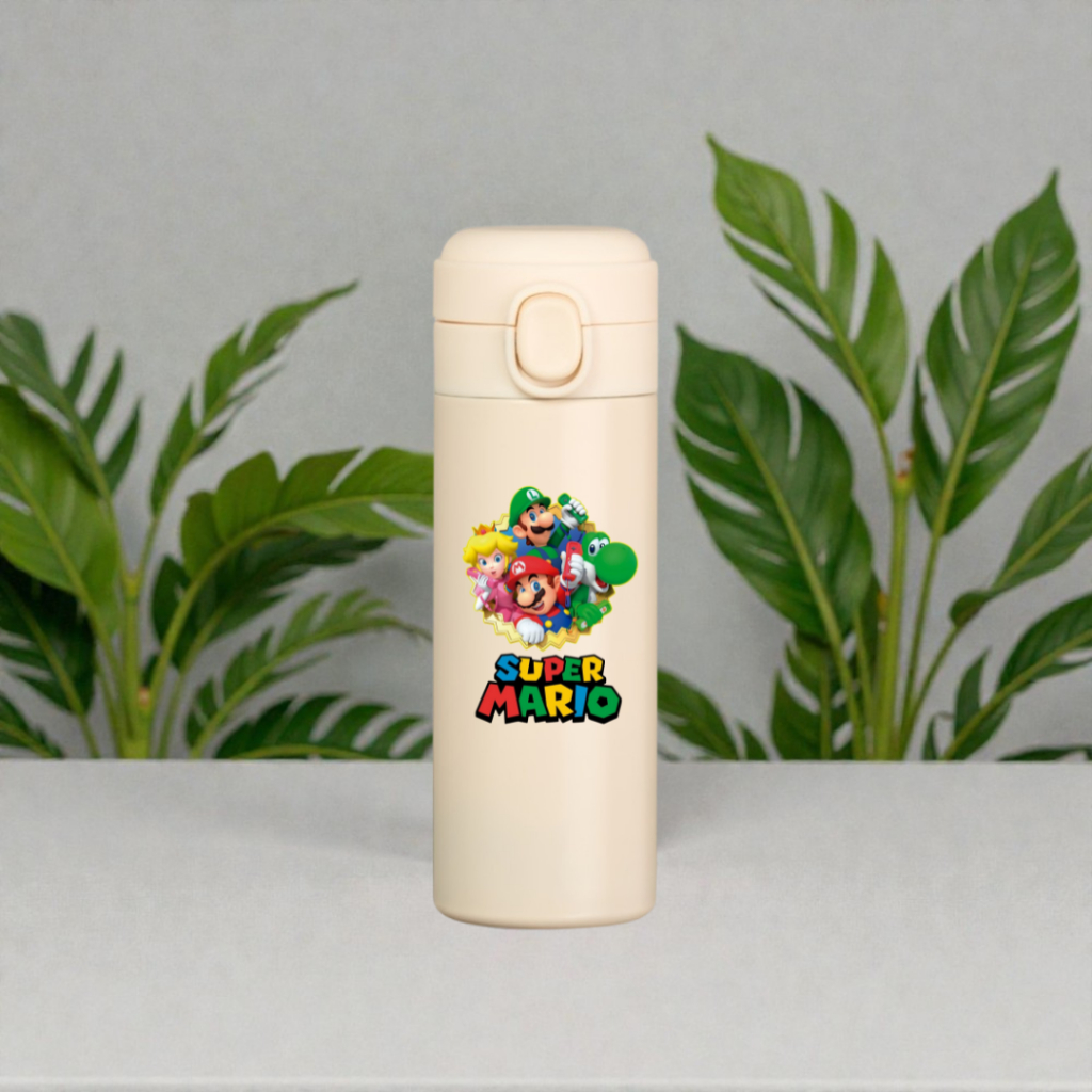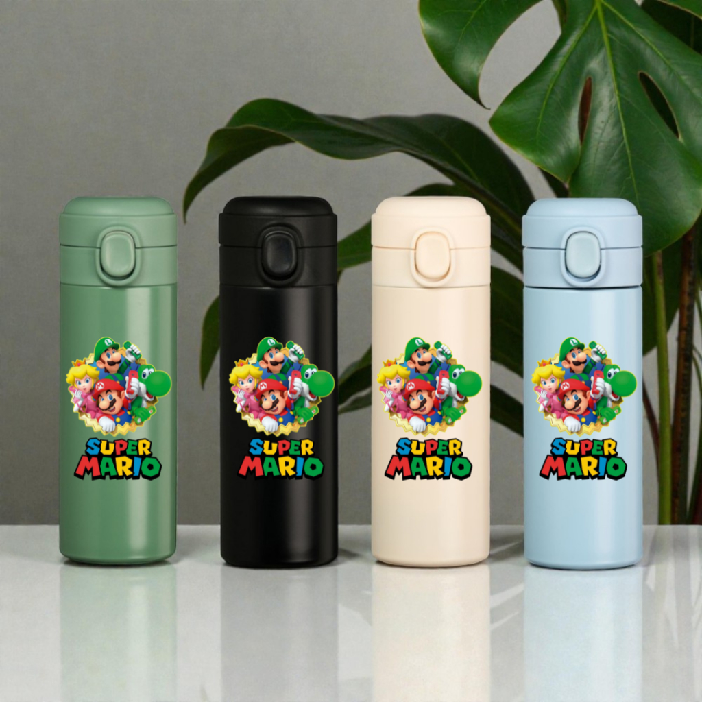 Garrafa Térmica Inox 400ml Super Mario Bros Personagens Crianças Presente Infantil Escola Água