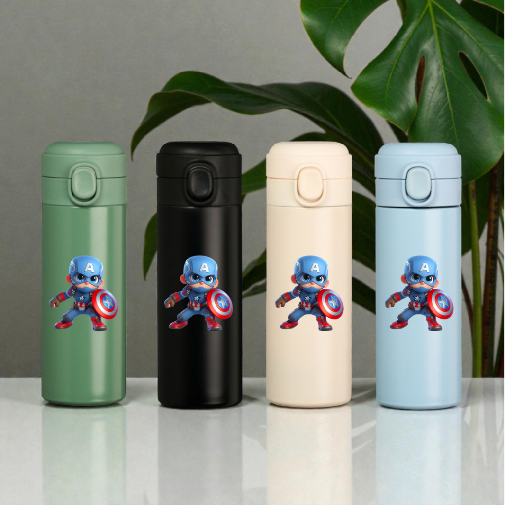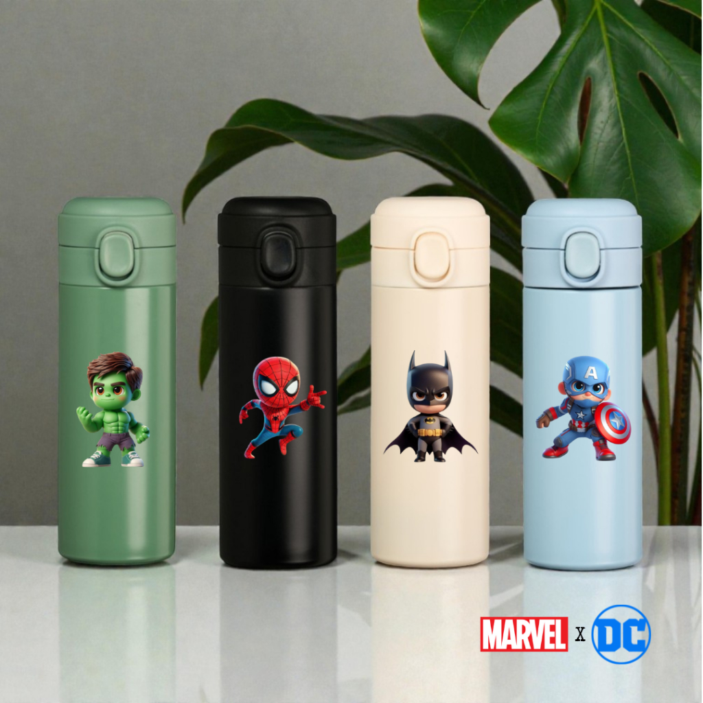 Garrafa Térmica Inox 400ml Super Heróis Crianças Presentes Infantil Lancheira Escola Passeios