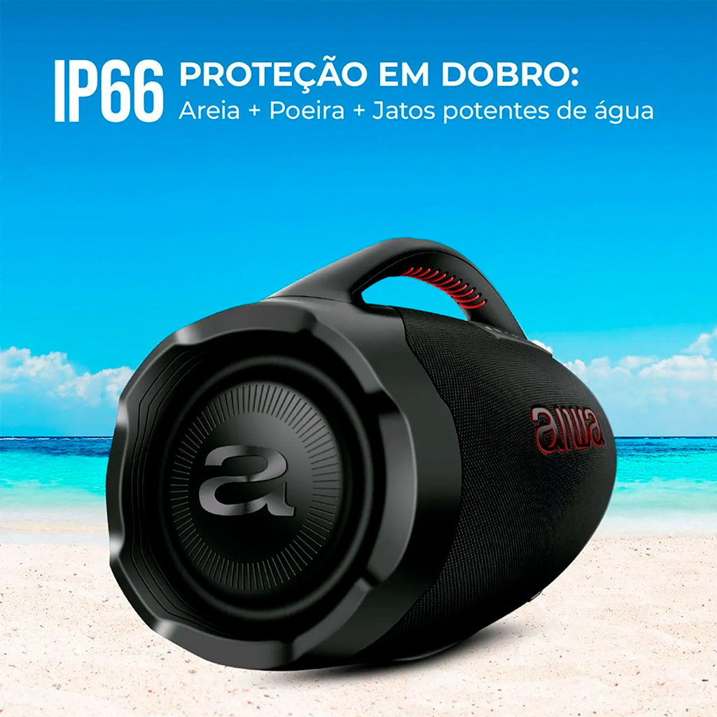 Caixa de Som AIWA Boombox Plus BBS-01-B, 200W, IP66 com Alça, 30H de Bateria, Bluetooth 5.3, TWS
