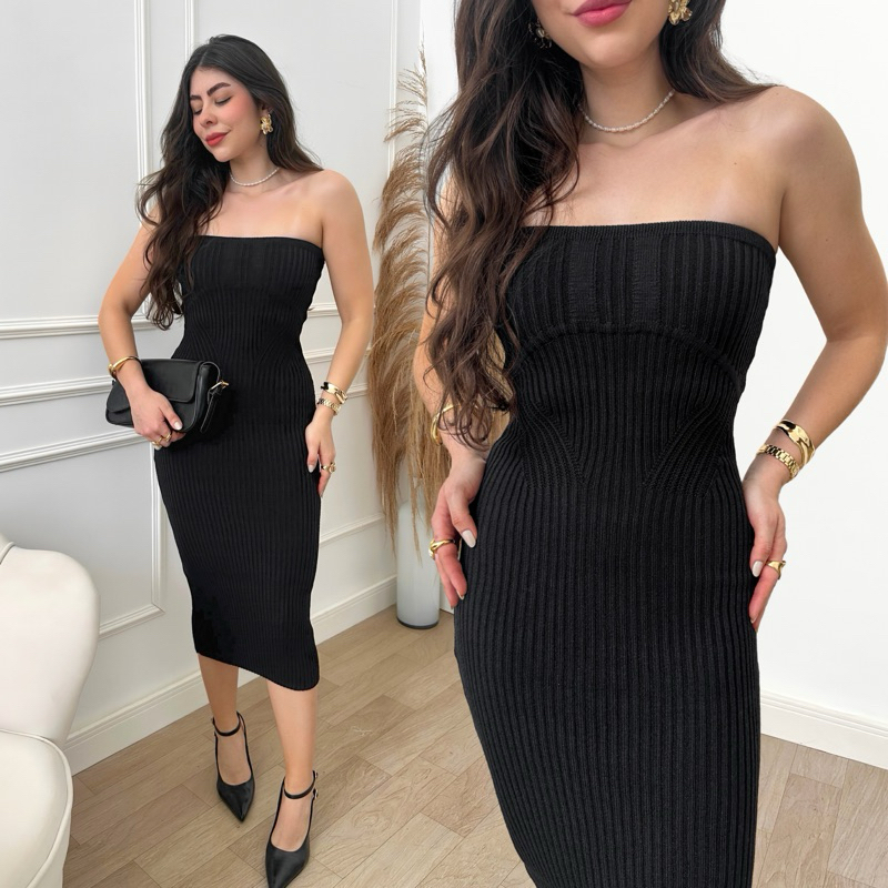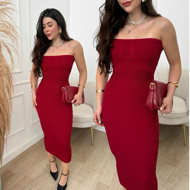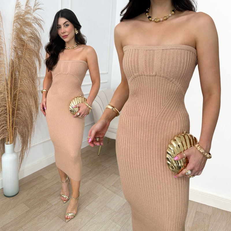 Vestido Tricot Modal Tomara Que Caia Feminino Canelado Verão 2024