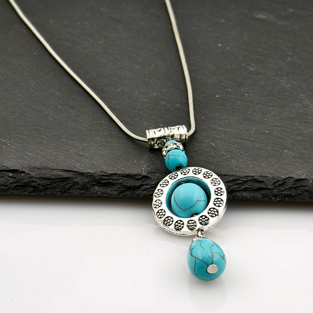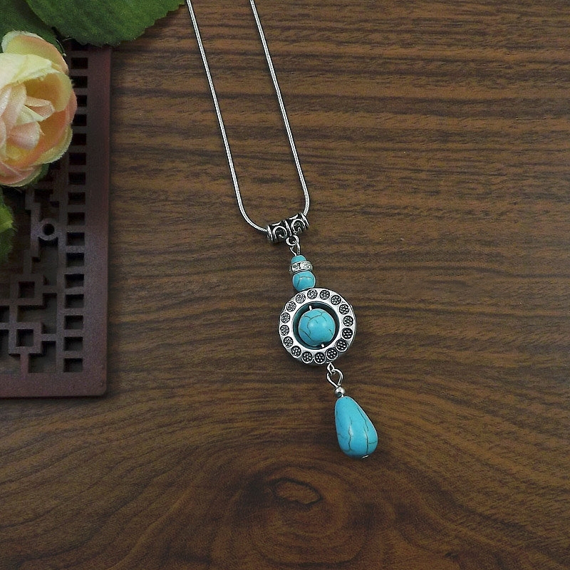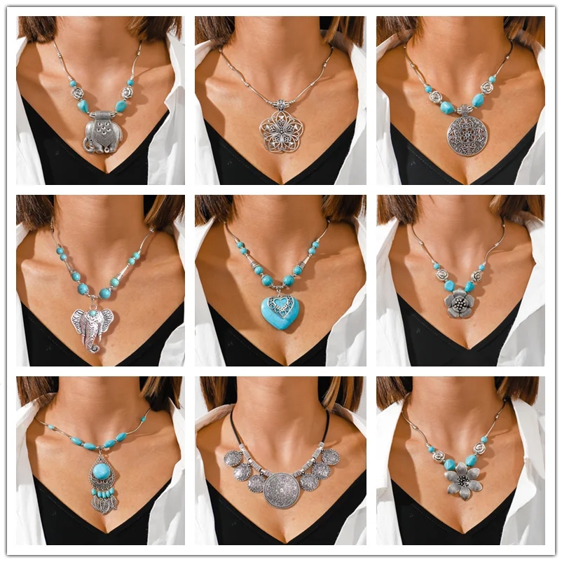 bohemia turquesa pedra colar para mulheres gargantilhas collier feminino pingentes étnicos colares