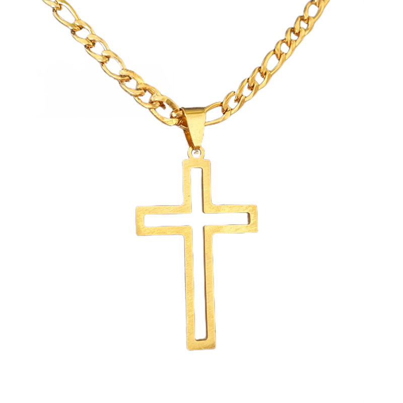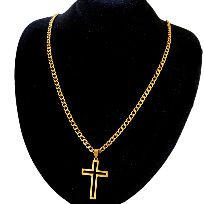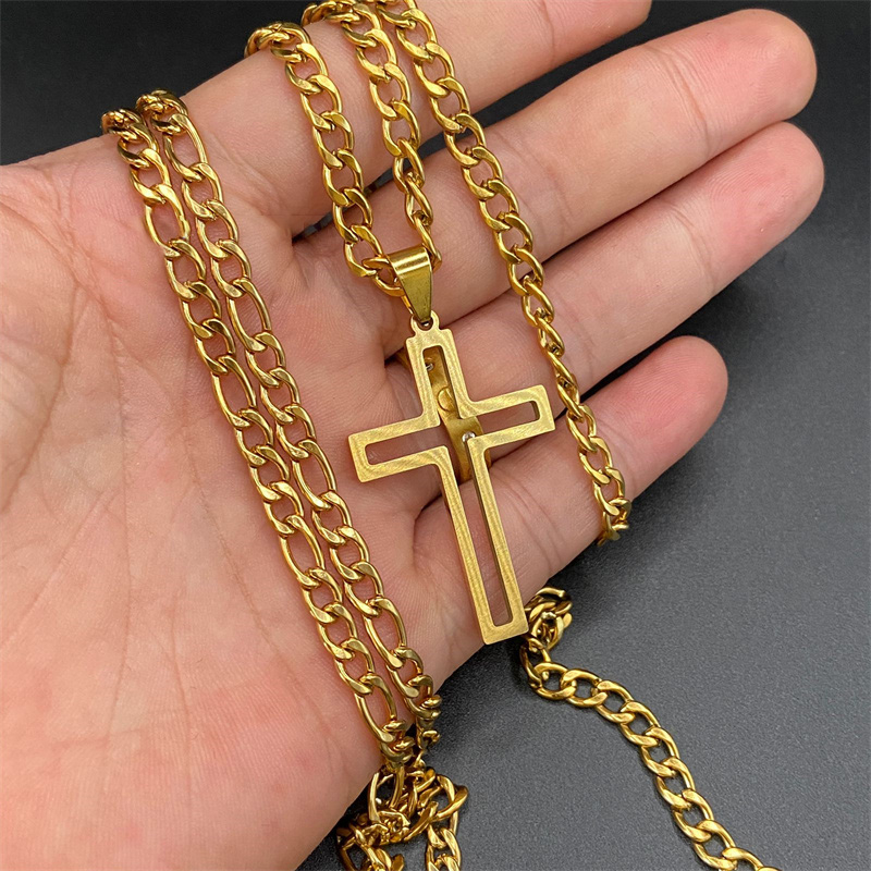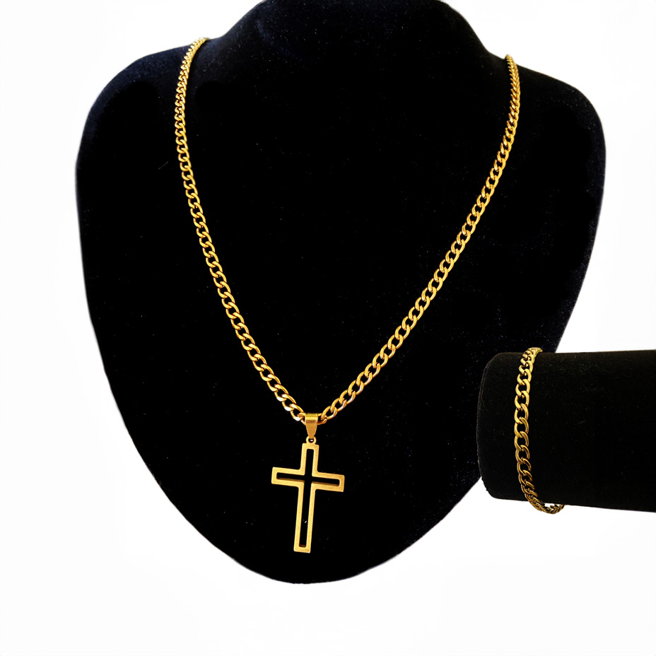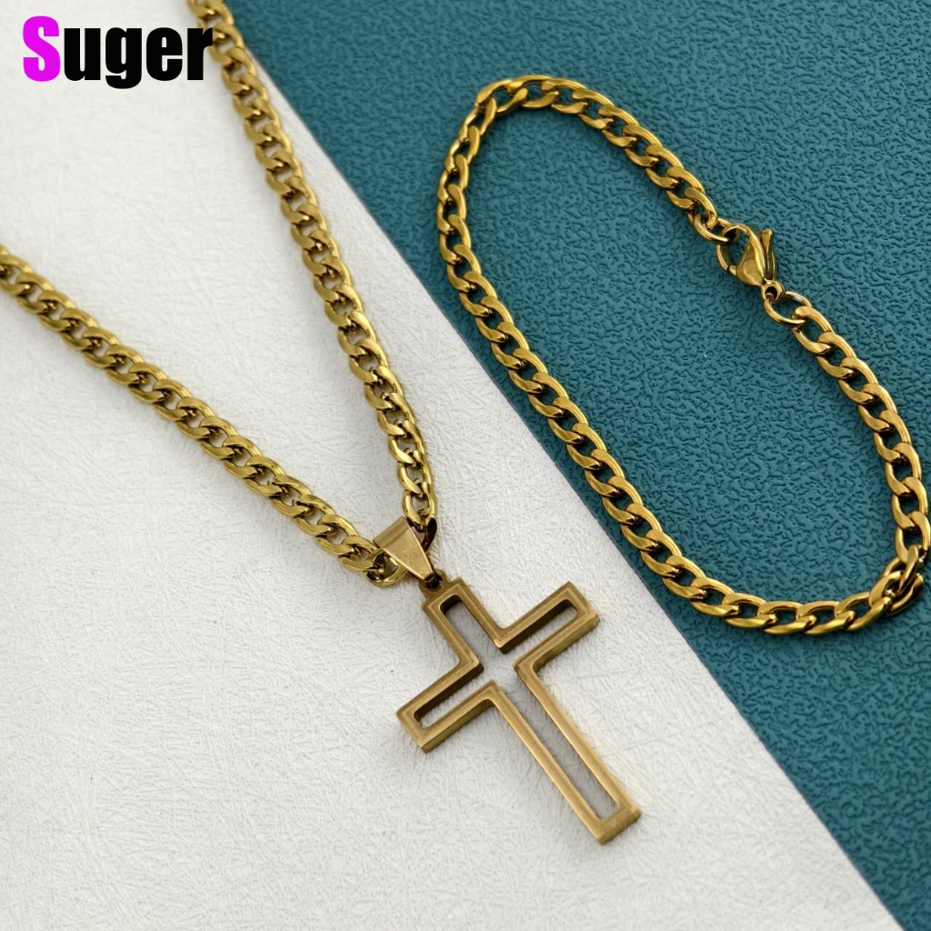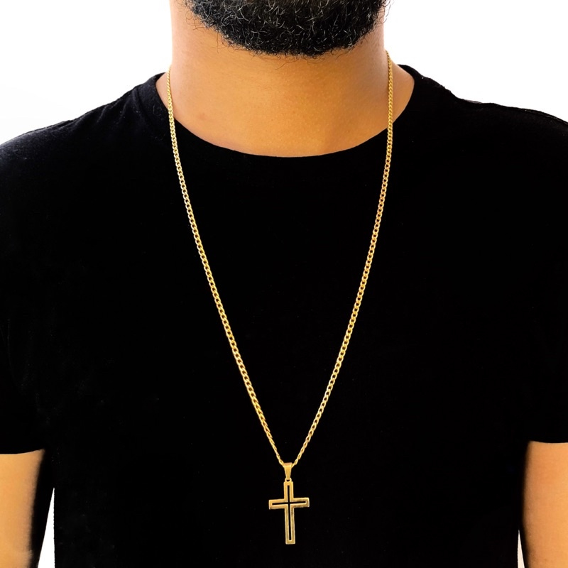 kit corrente pulseira Masculina cordão aço inox banhado Dourado colares masculinos com pingente de Cruz Aço Inoxidável 316L