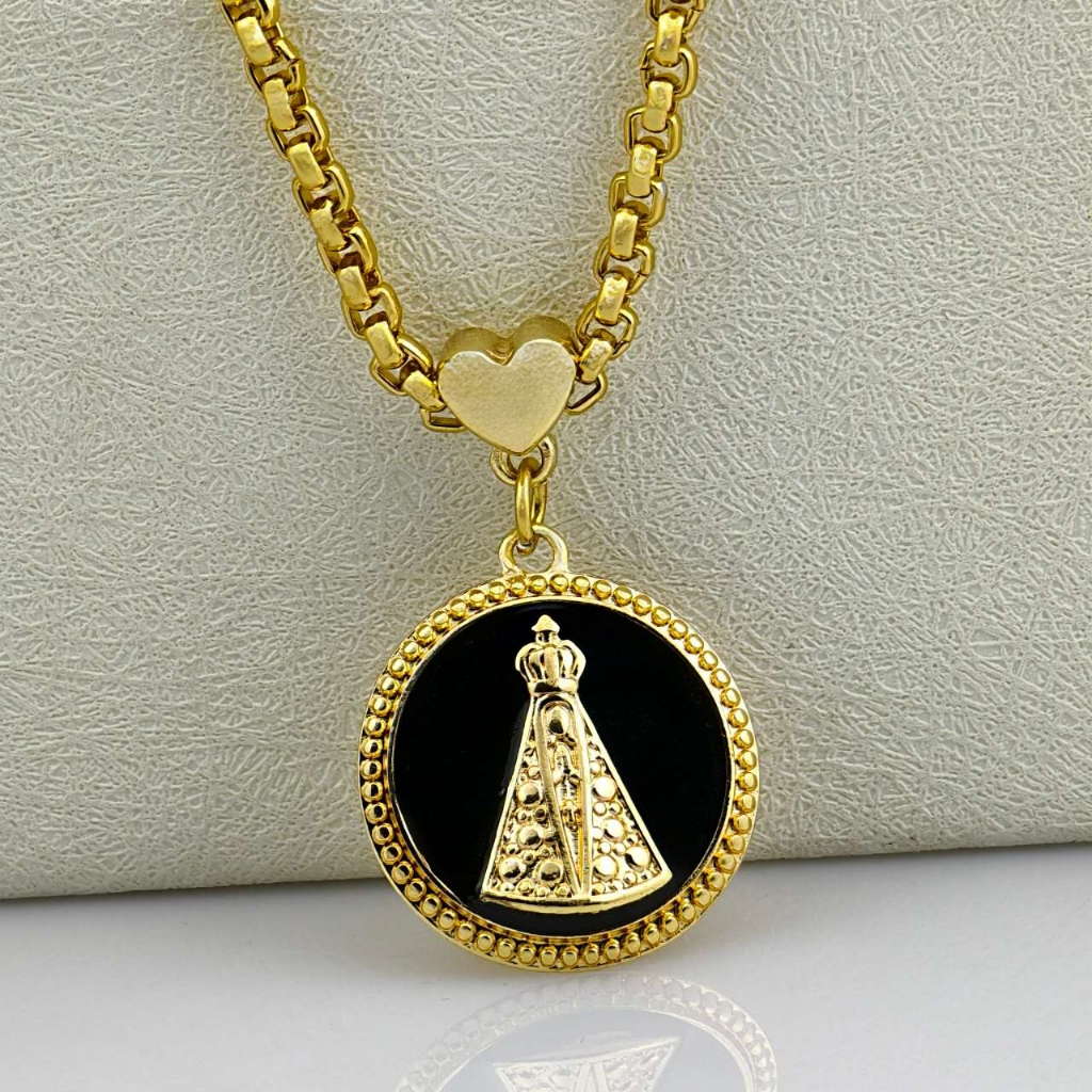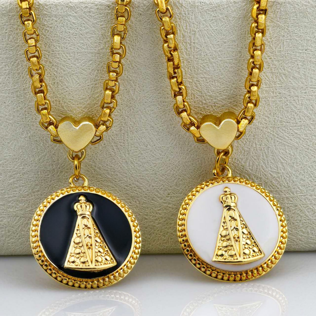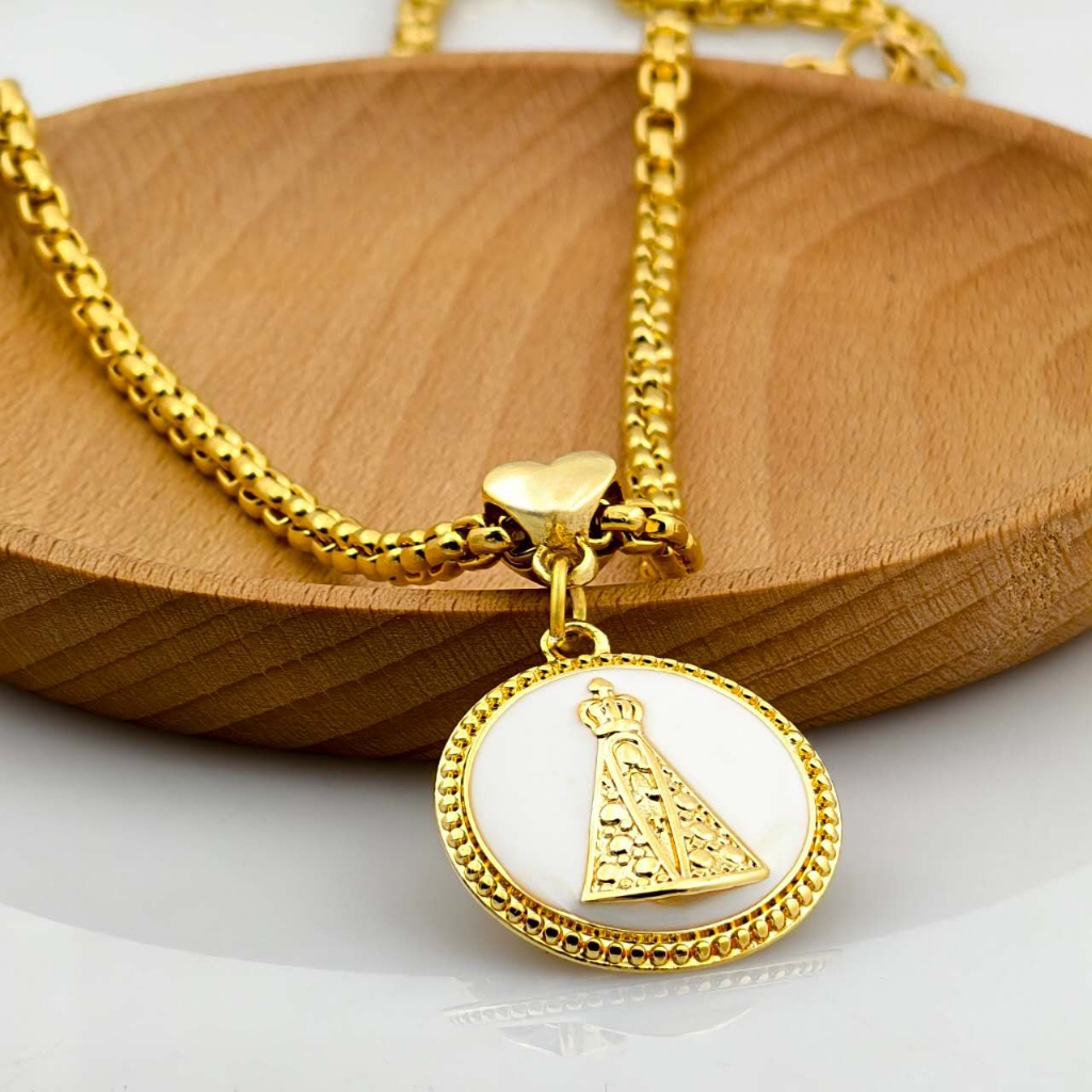 Colar Corrente e Pulseira Portugues Grosso Mulheres Dourado Colares Pingente Nossa Senhora Aparecida