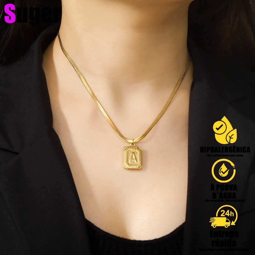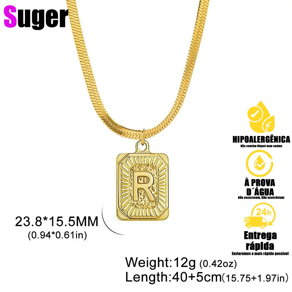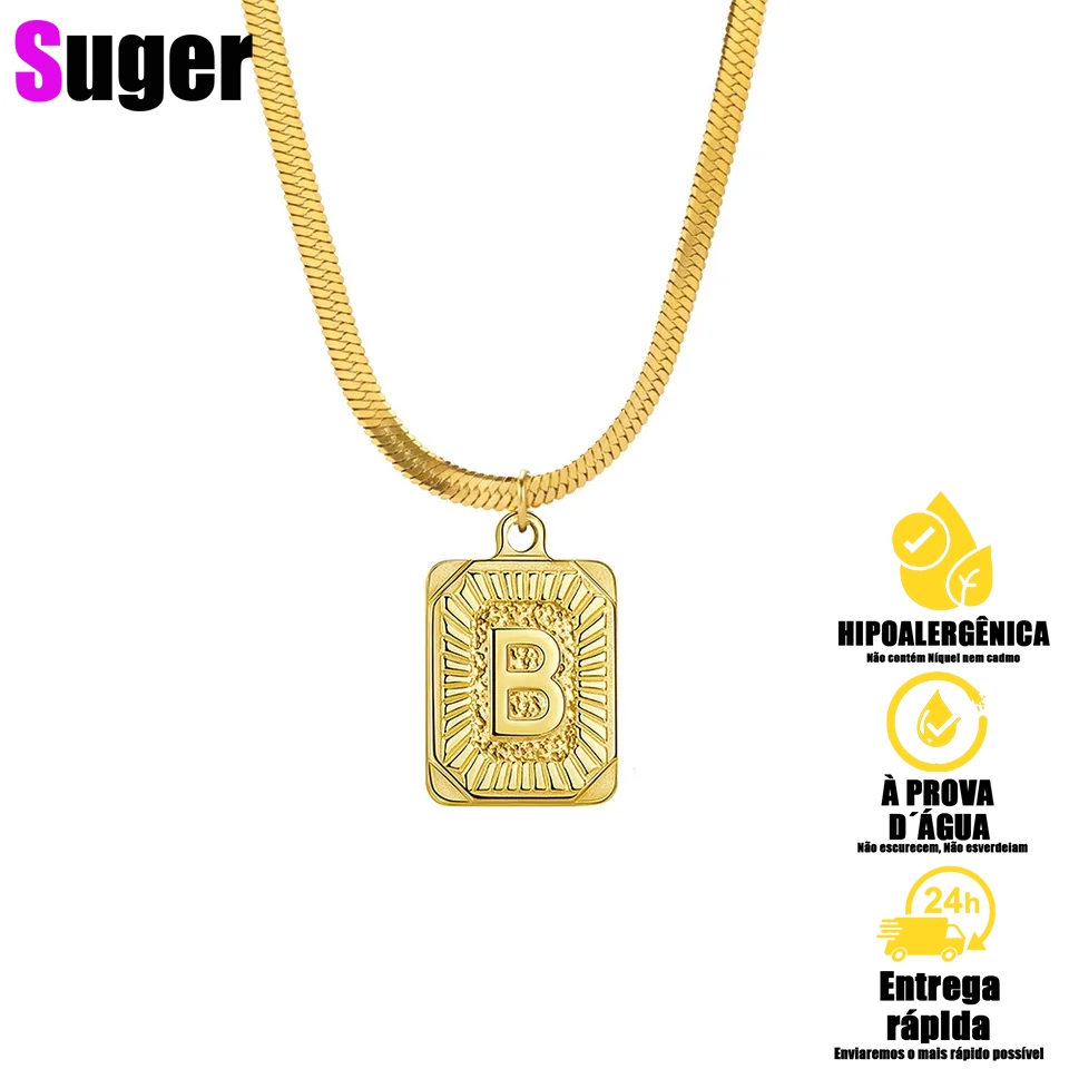 Clássico A-Z Carta Inicial Praça Colar de Pingente para Masclino e Feminima, colar letra inicial Aço