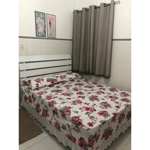 Lençol Com Elástico Casal + Fronhas 100% Algodão