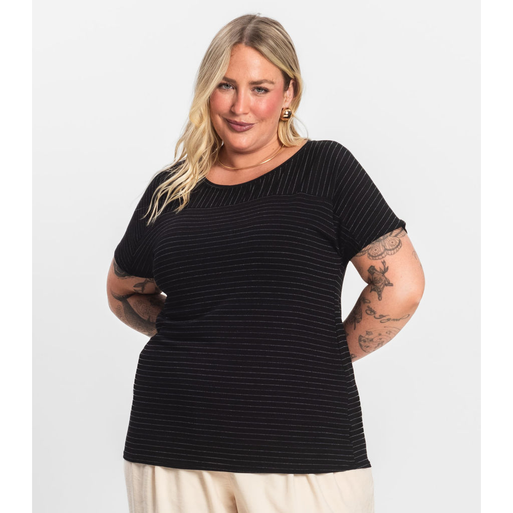 Blusa Feminina de Viscose Plus Size Infinita Cor Preto