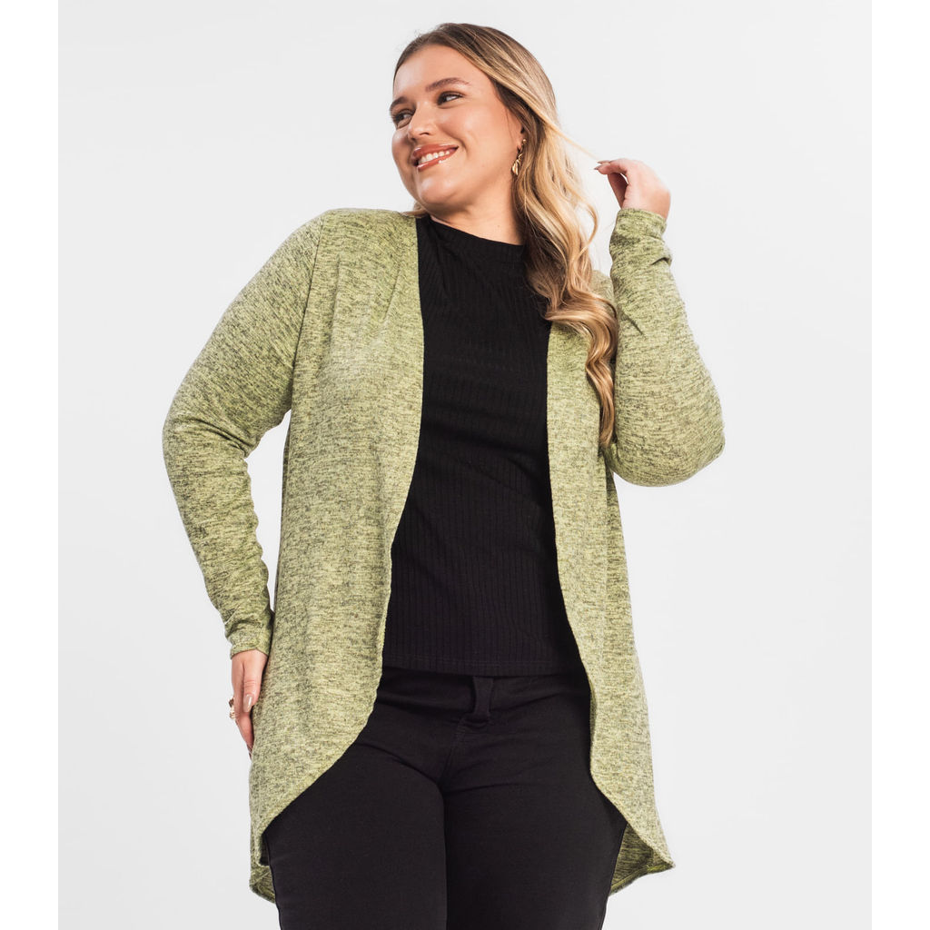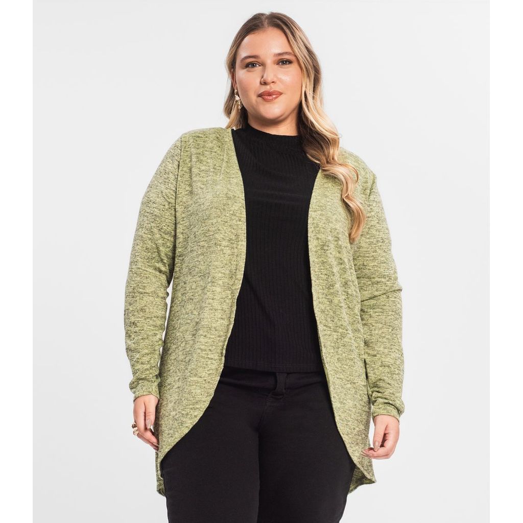 Cardigan Feminino Plus Alongado Infinita Cor Amarelo