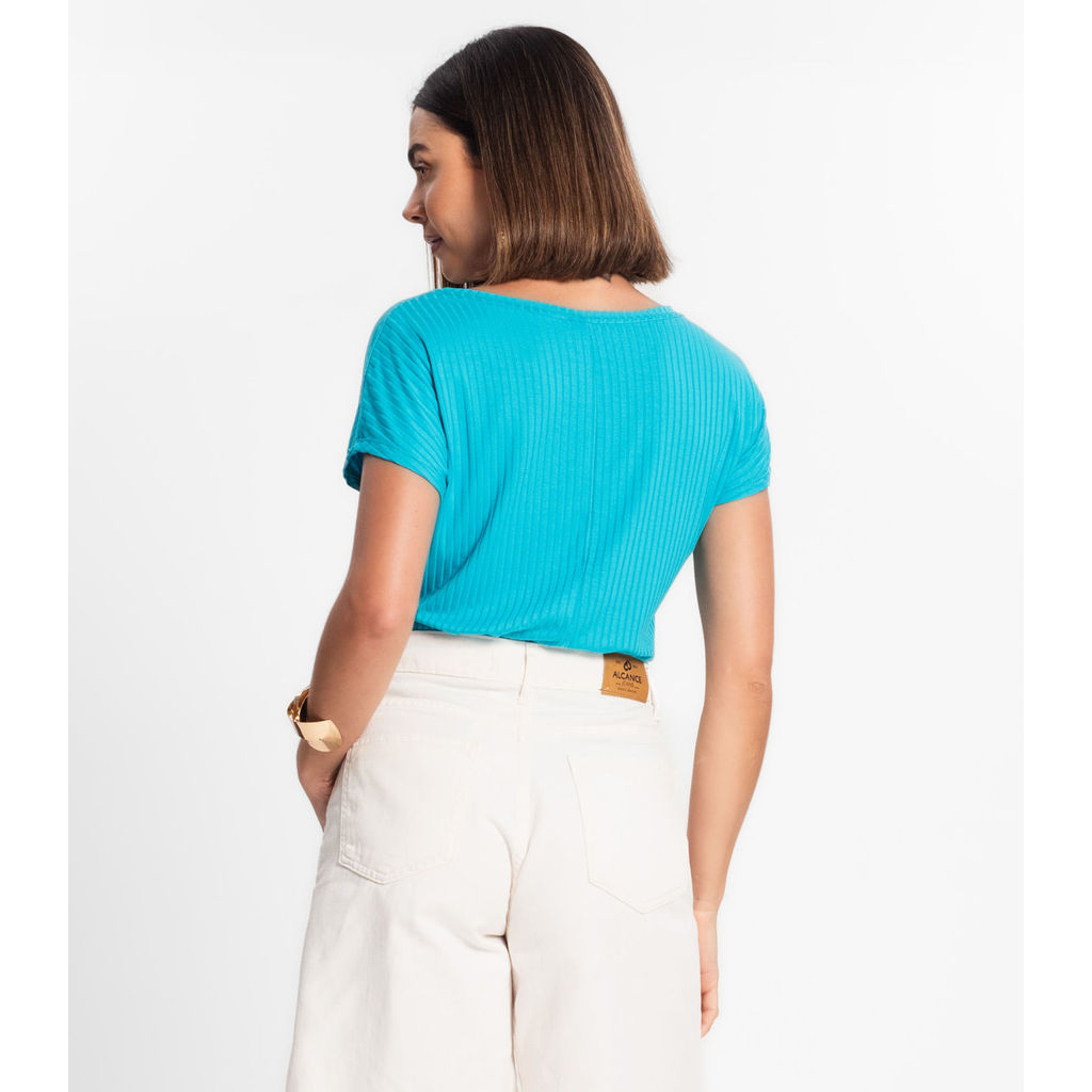 Blusa Feminina Ribana Canelada Básica Rovitex Azul