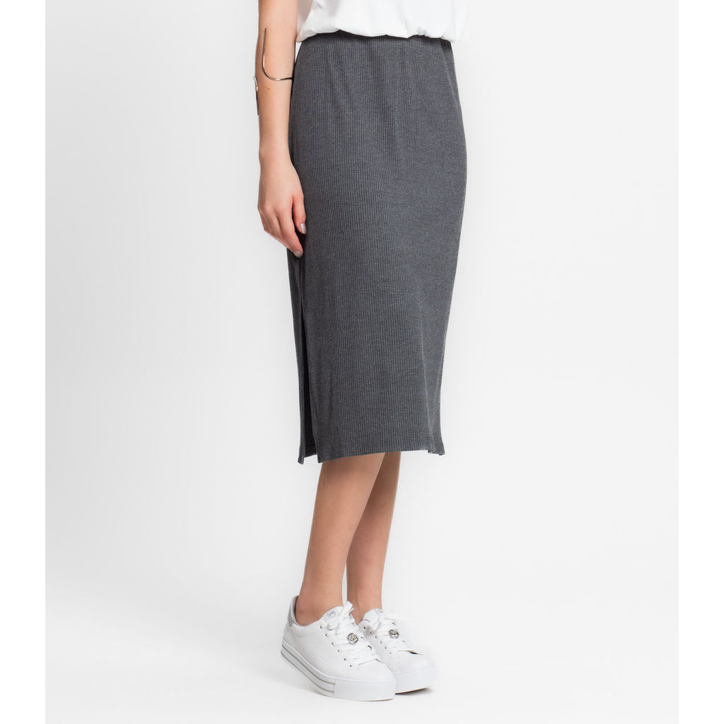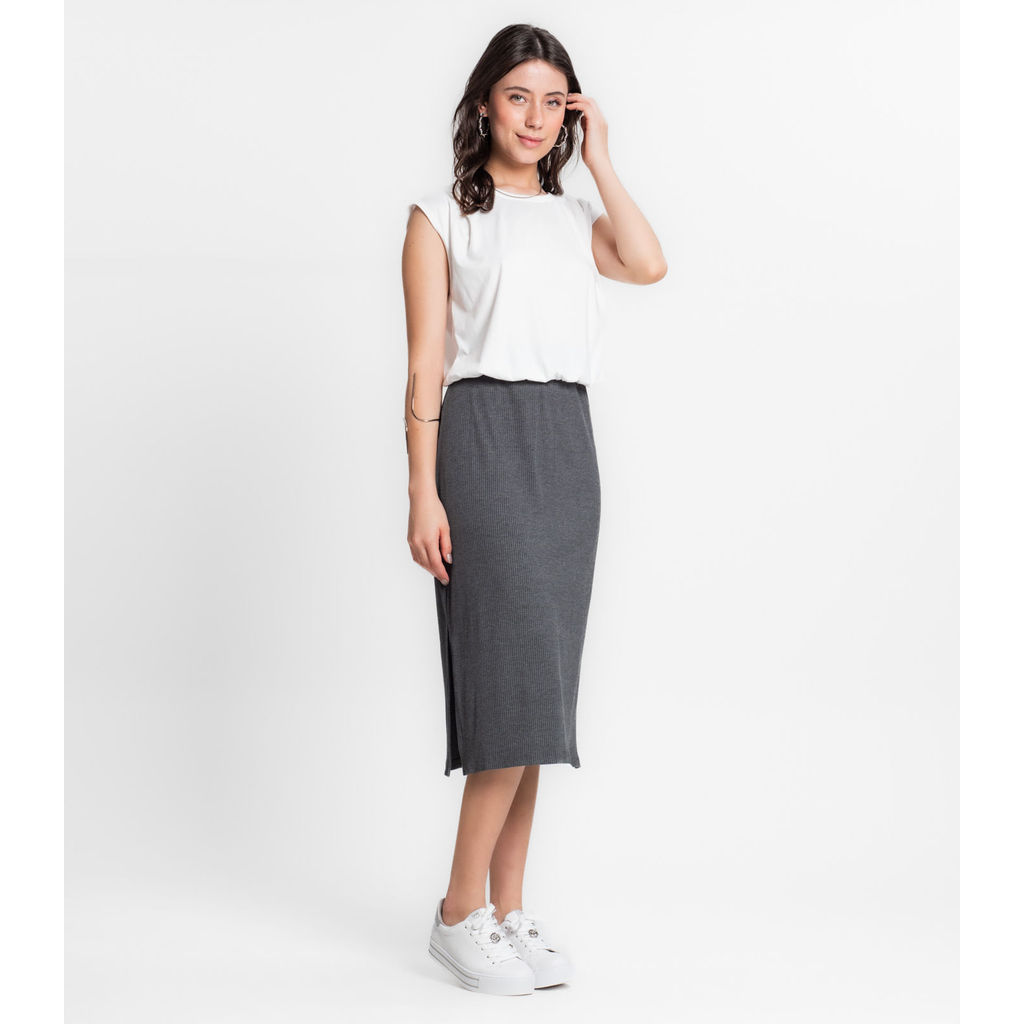 Saia Midi Canelada Infinita Cor Cinza