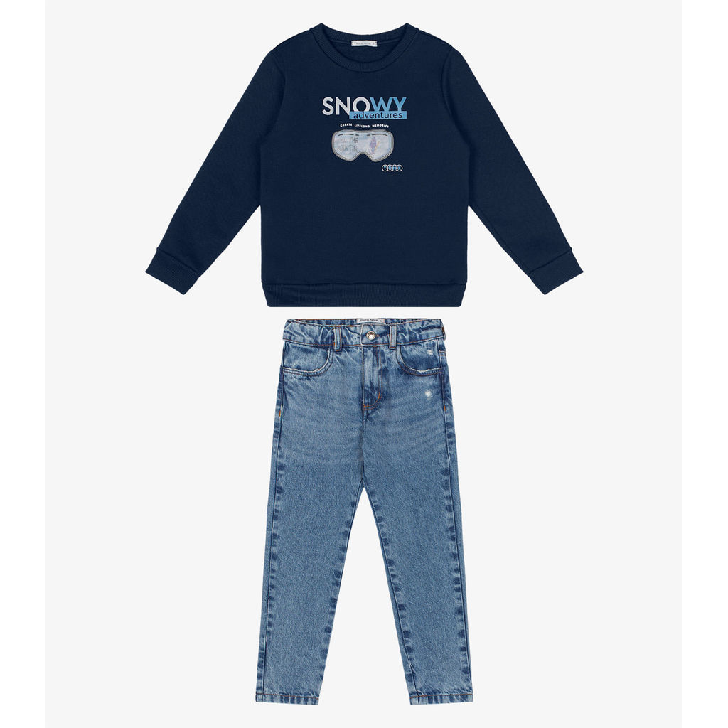 Conjunto Moletom Com Calça Jeans Trick Nick Azul