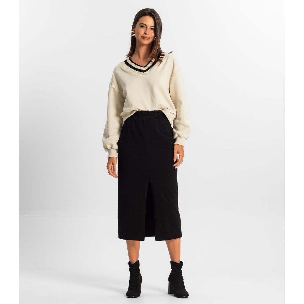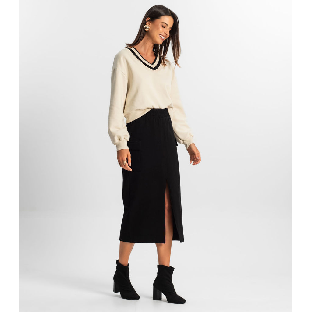 Saia Midi Cargo Feminino Rovitex Preto