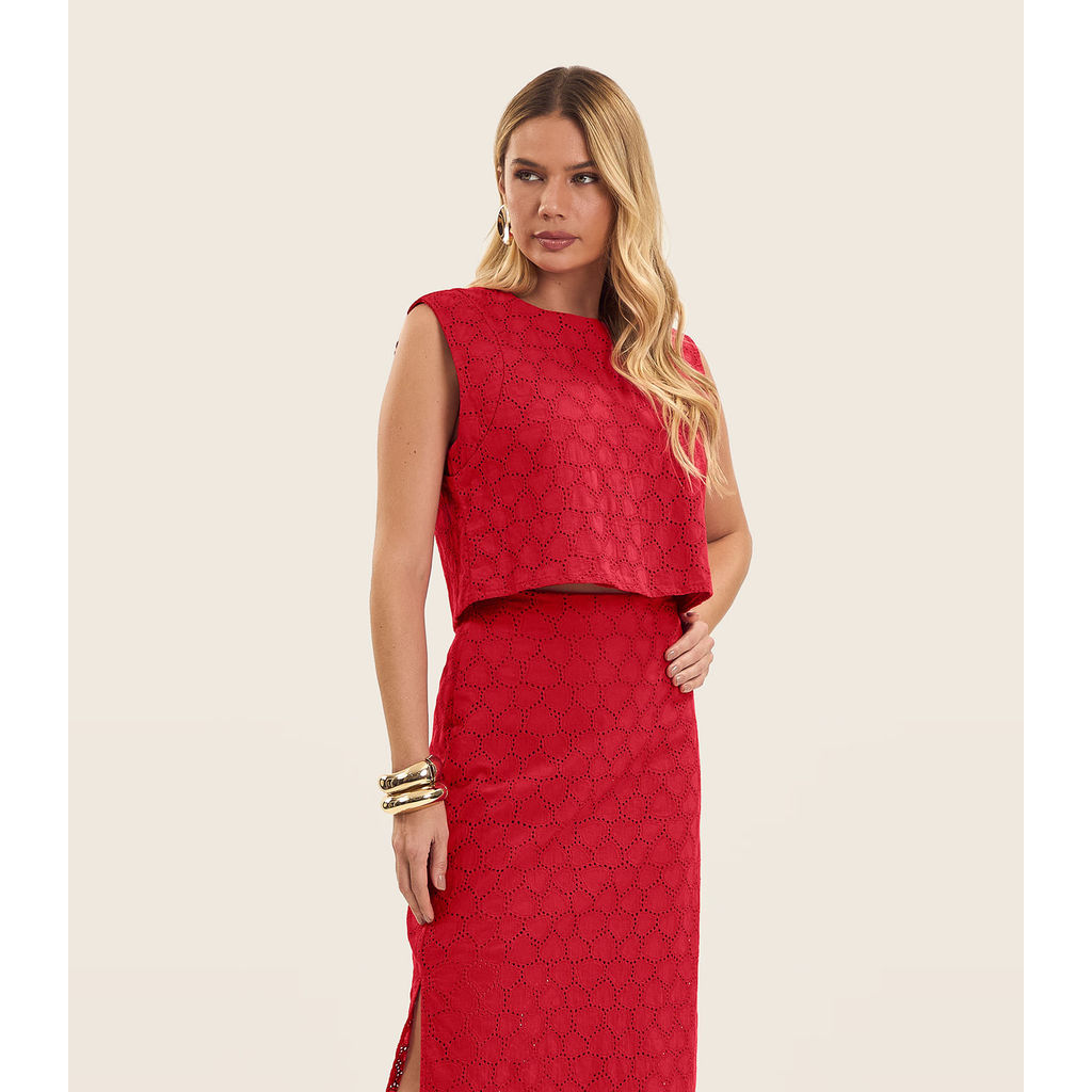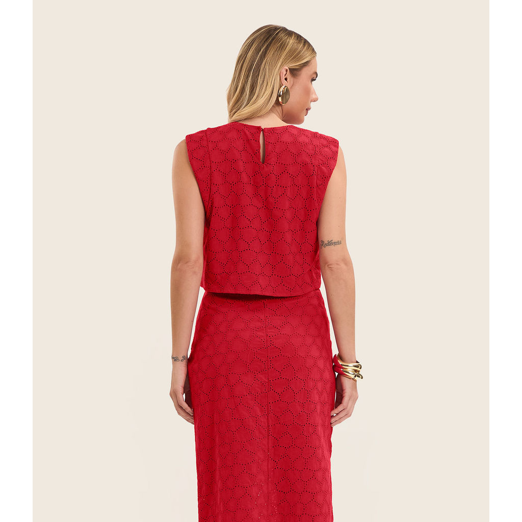 Blusa Feminina Manga Curta Em Laise Endless Vermelho