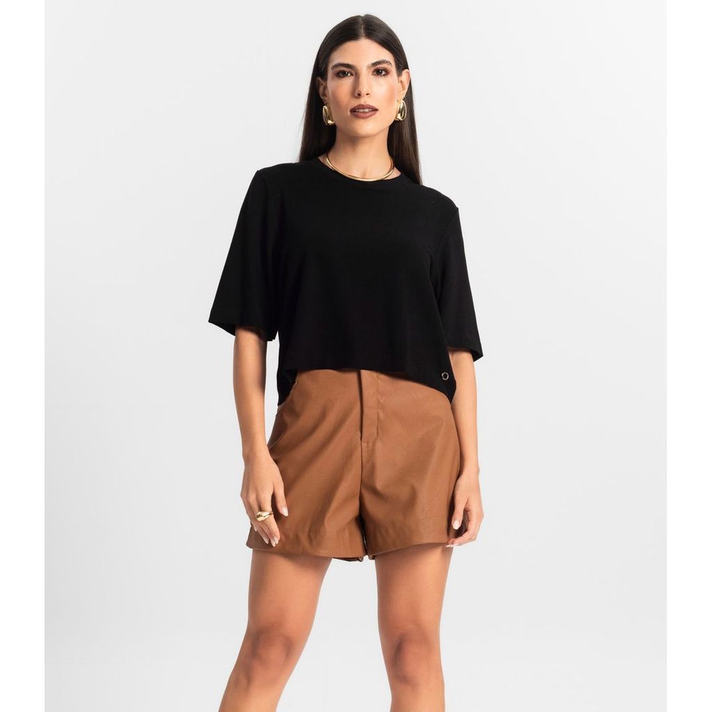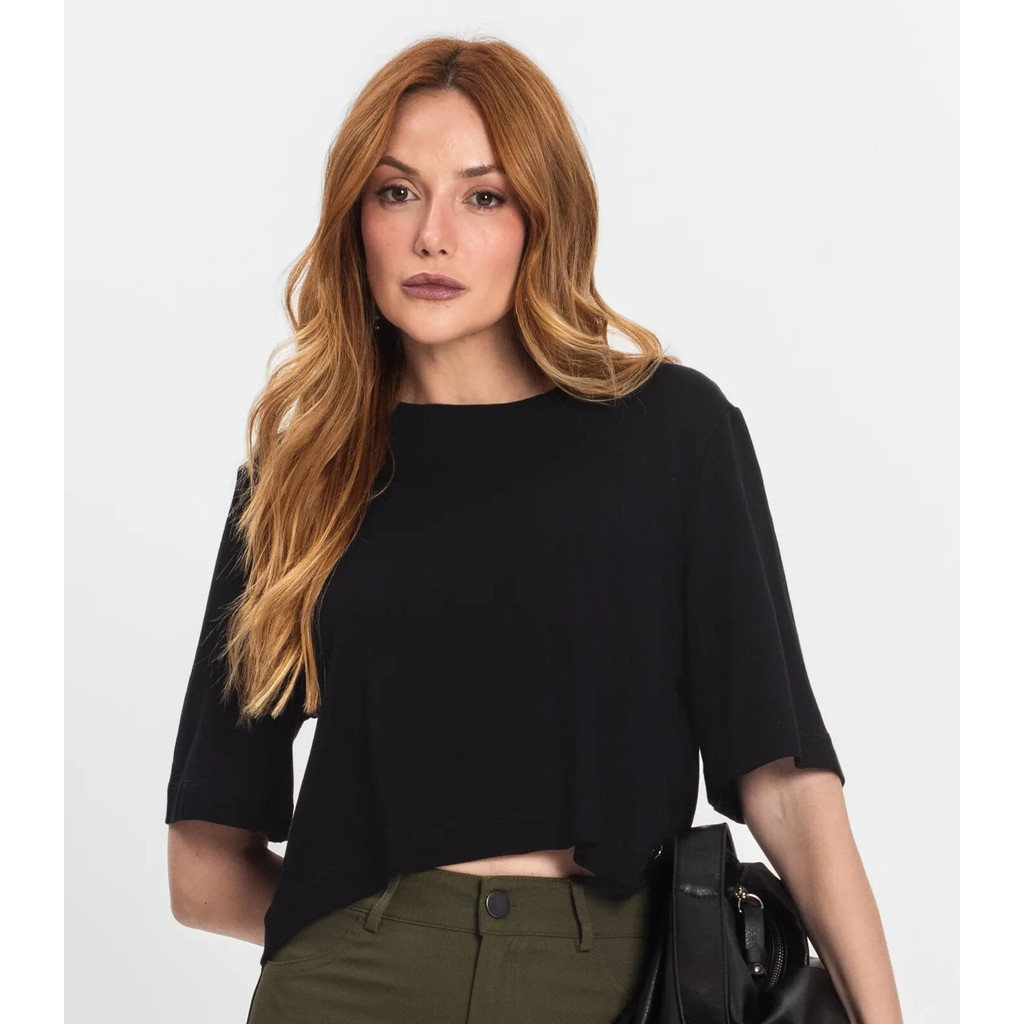 Blusa Feminina Manga Curta em Molecotton Endless Preto