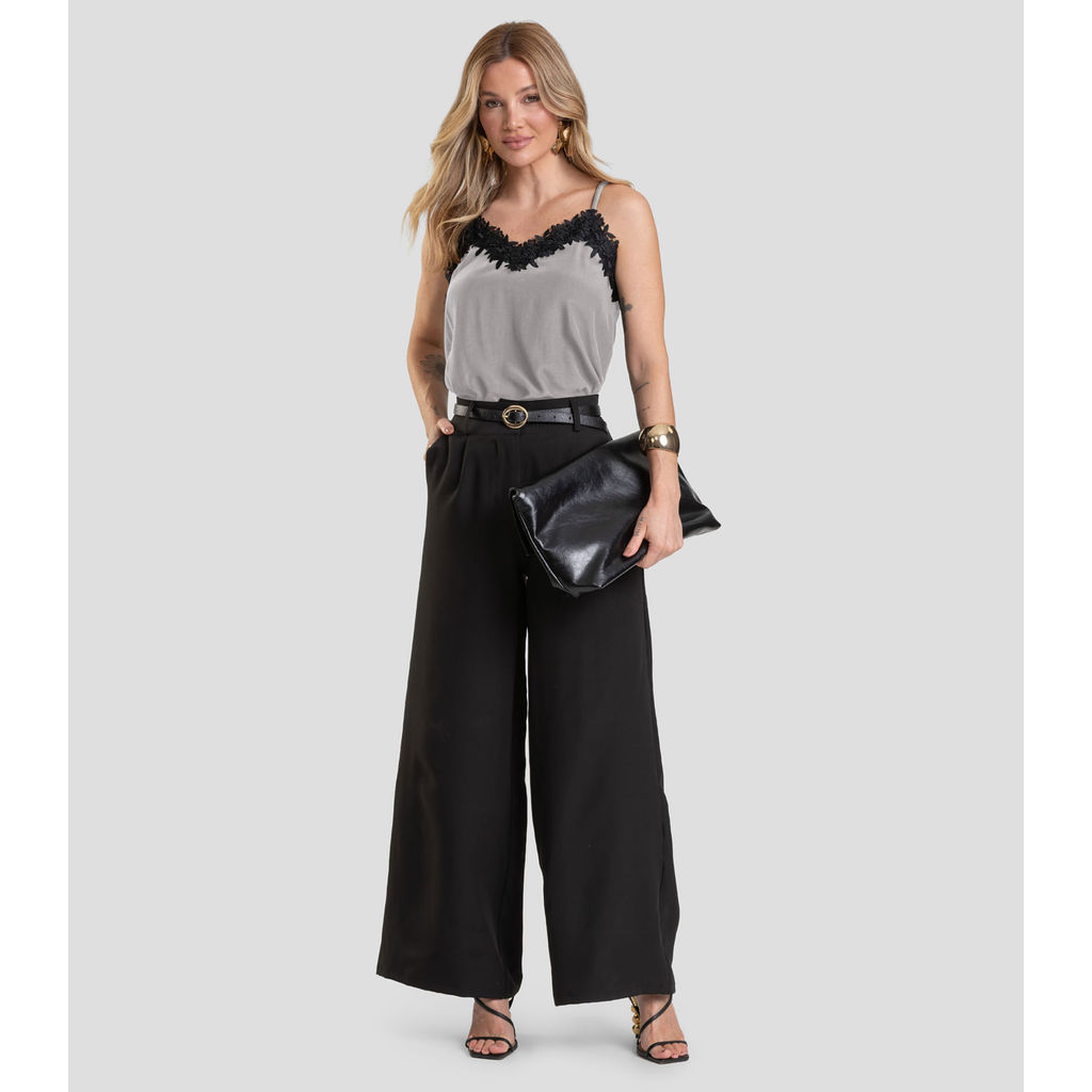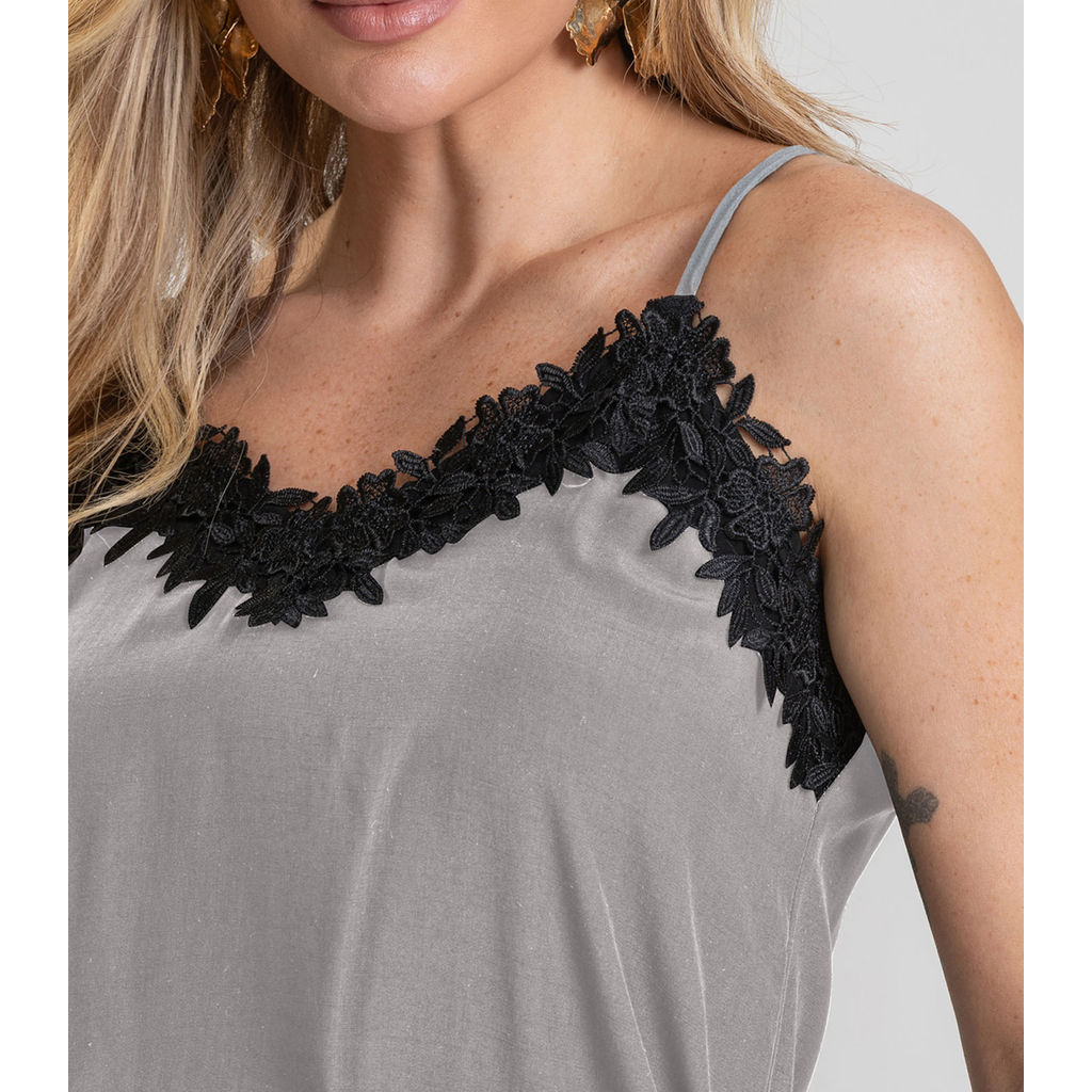 Blusa de Alça Feminina em Tecido Acetinado Dianna Cinza