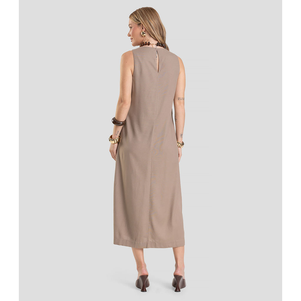 Vestido Midi Feminino em Tecido Linho Dianna Marrom