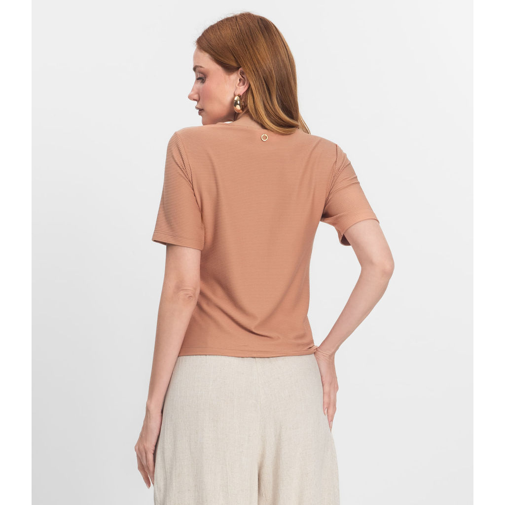 Blusa Feminina Manga Curta em Poly Endless Marrom