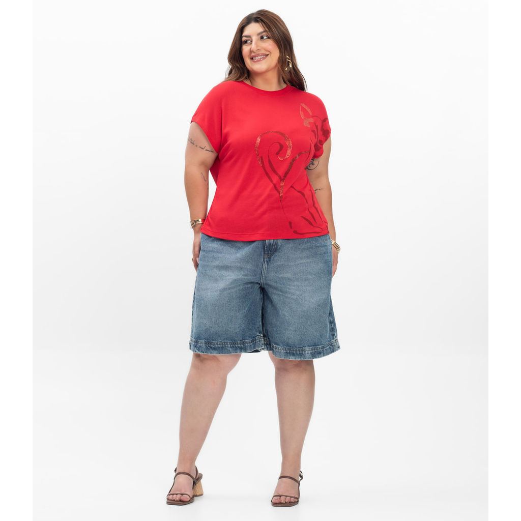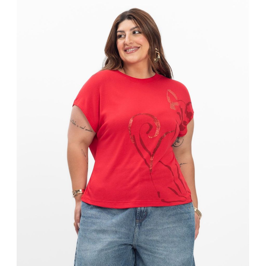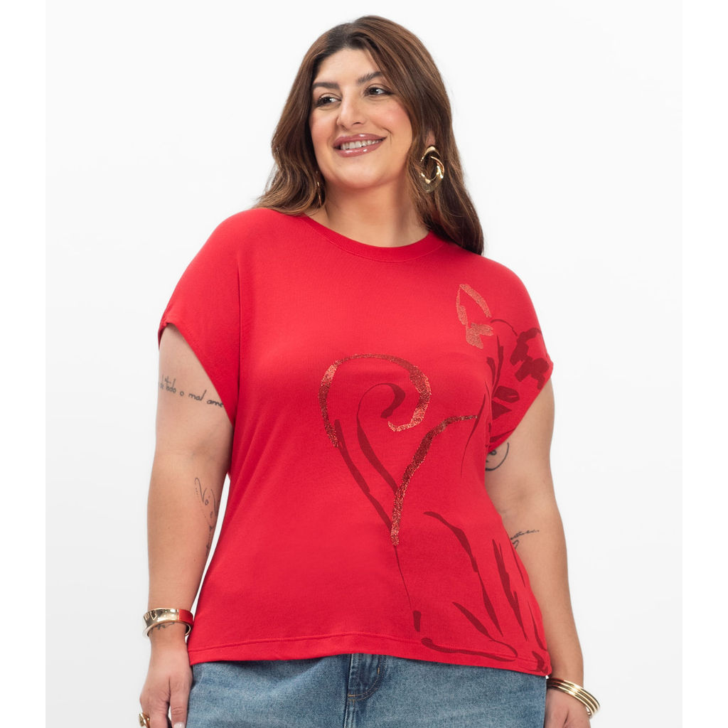 Camiseta Feminina Plus Size Secret Glam Vermelho