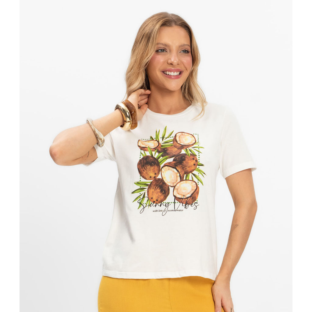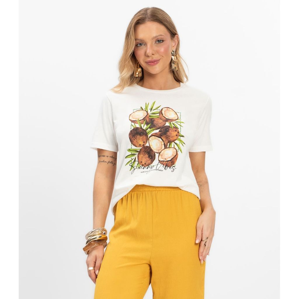 T- Shirt Feminina Meia Malha Rovitex Bege