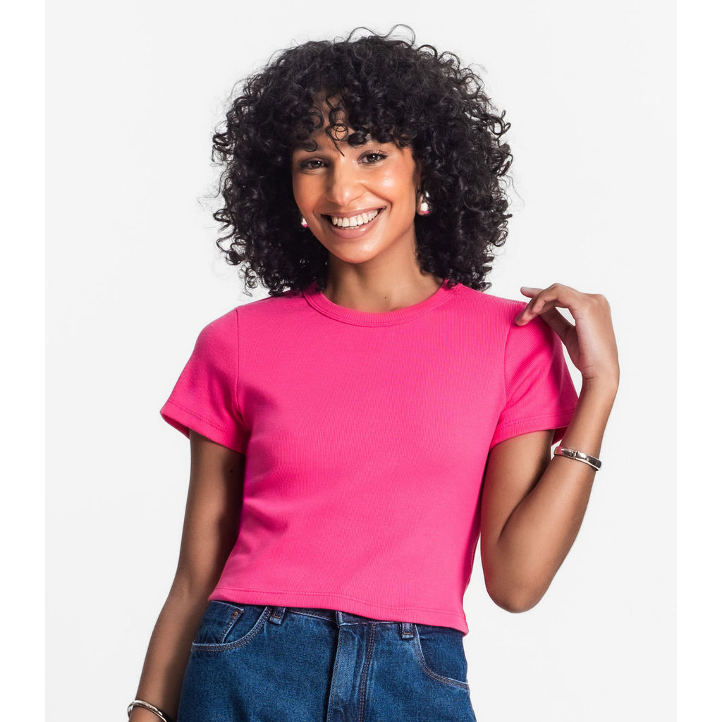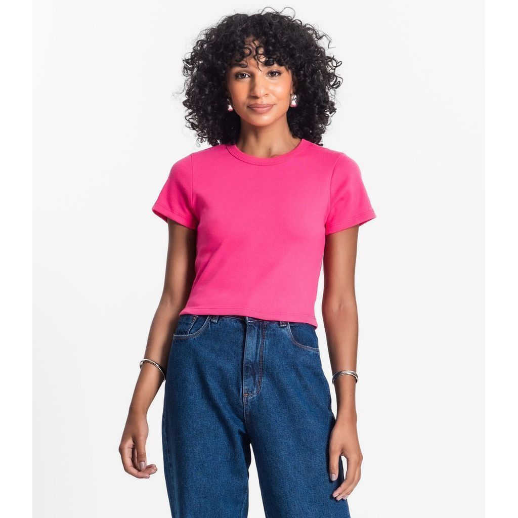 Blusa Cropped Ribana Básica Rovitex Rosa