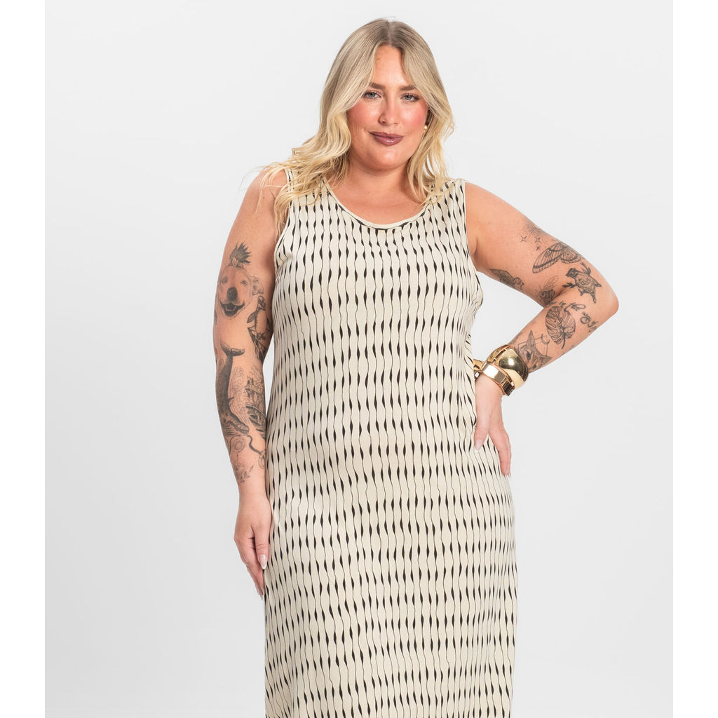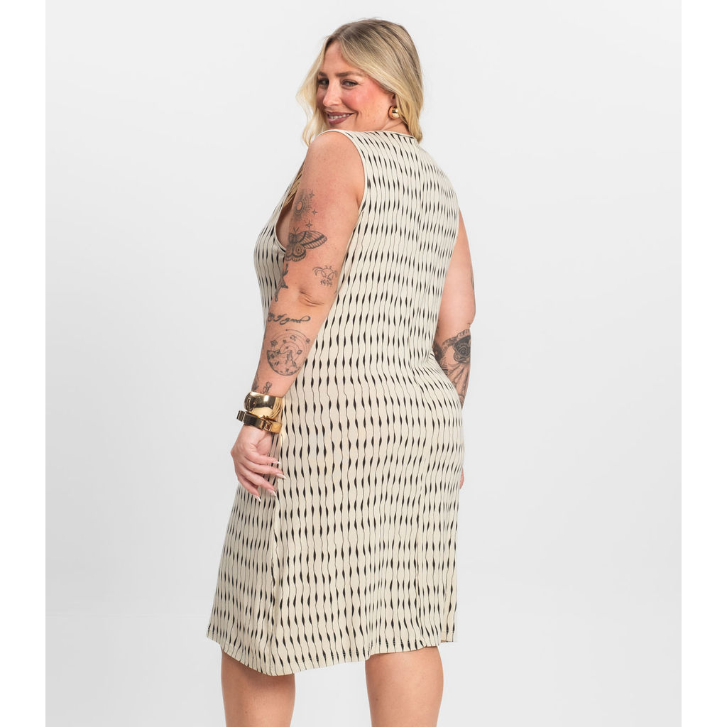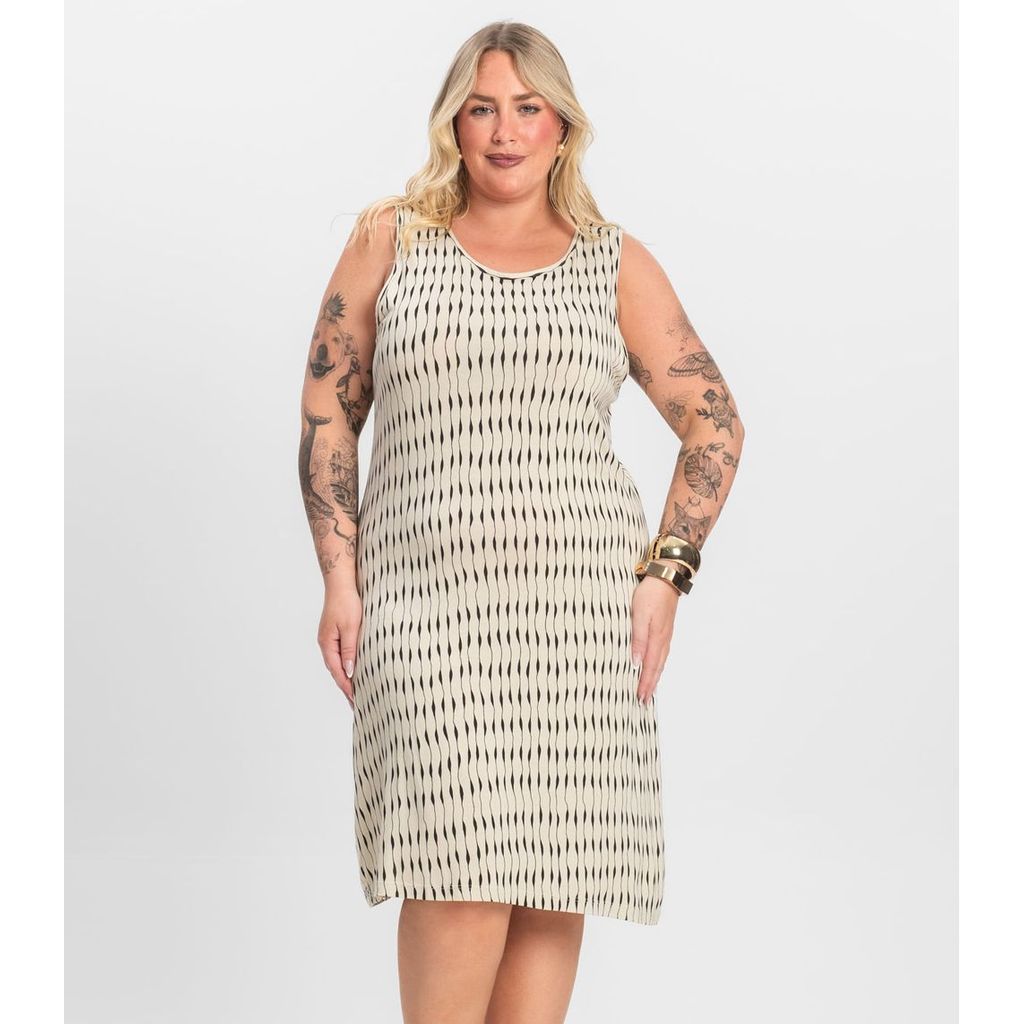 Vestido Plus Size Estampado Infinita Cor Bege