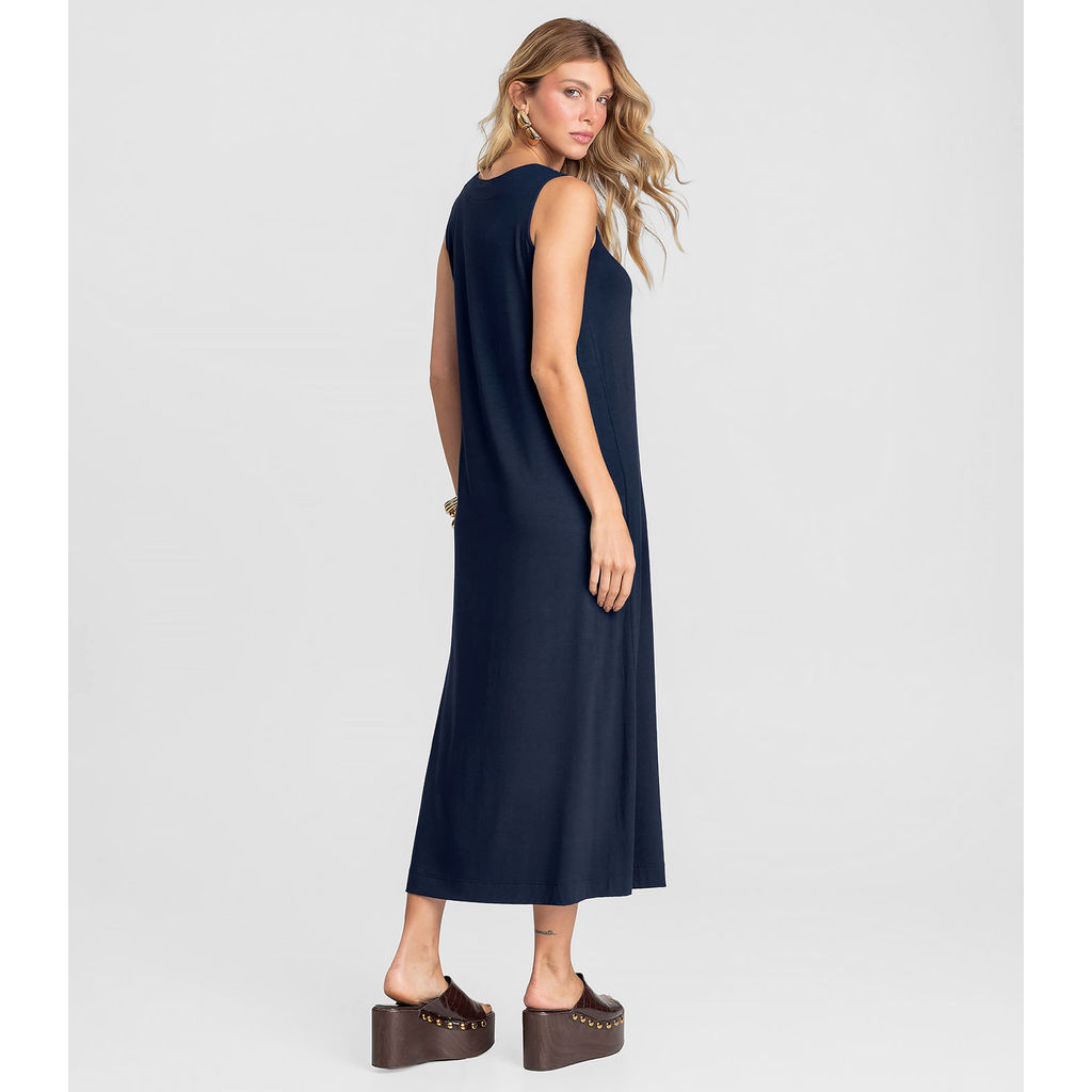 Vestido Midi Feminino em Malha Visco Dianna Azul