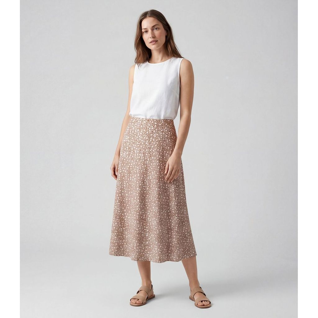Saia Midi Com Recorte Nas Costas Infinita Cor Marrom