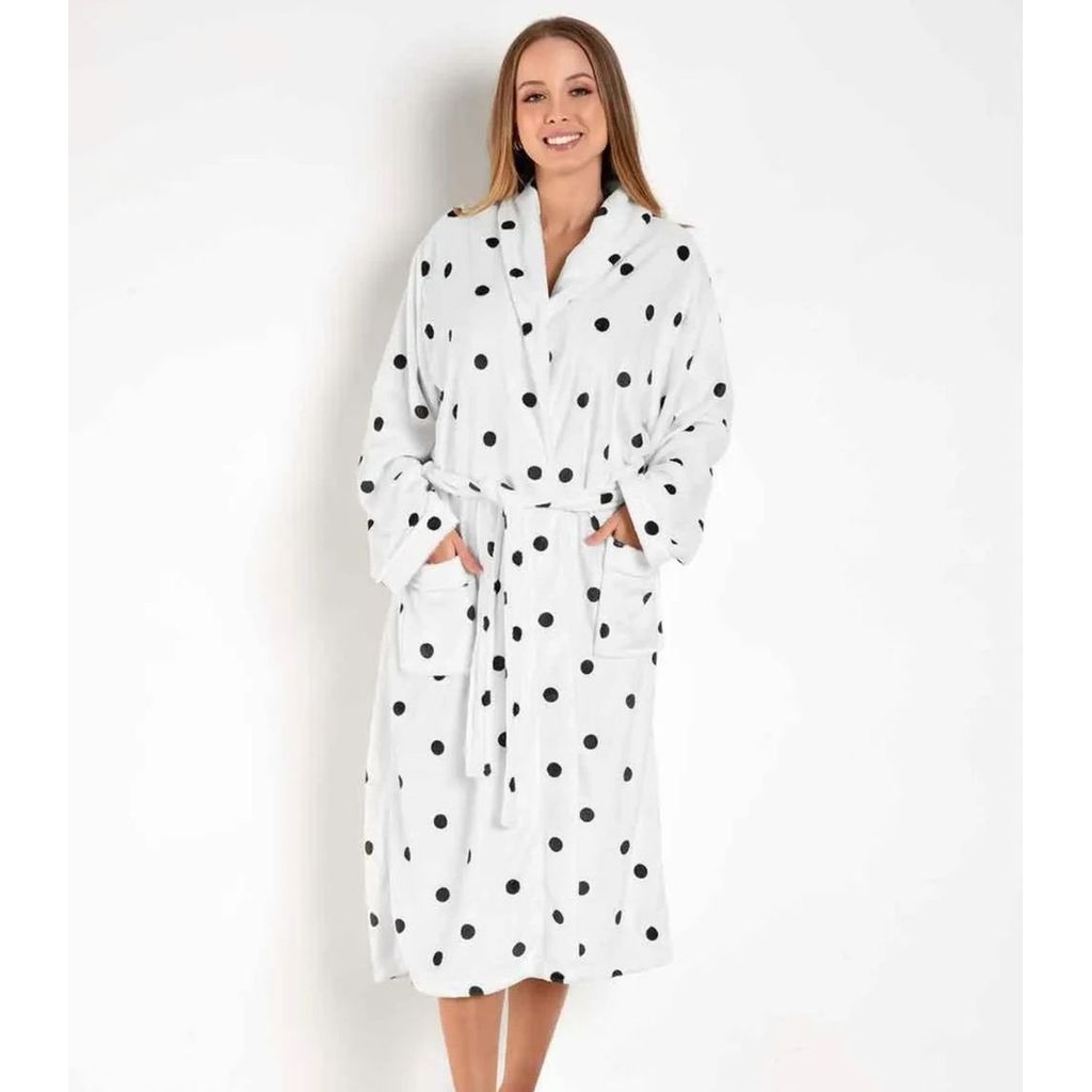 Roupão Adulto Em Plush Com Bolso Lar E Lazer Branco