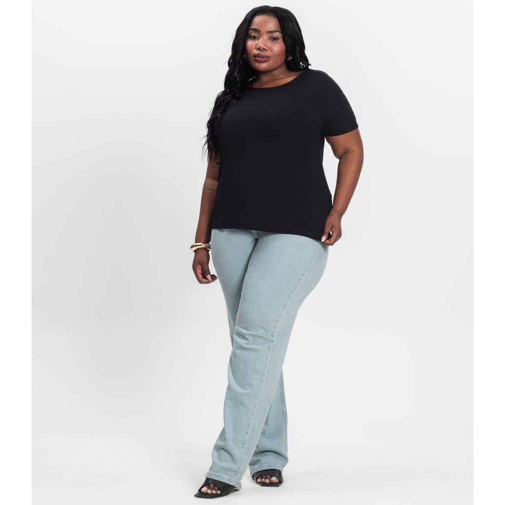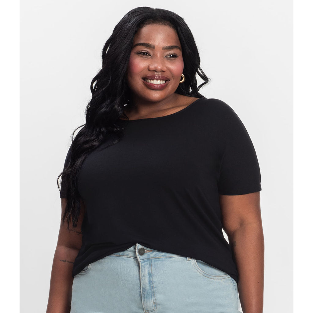 Blusa Manga Curta Feminina Plus Size Secret Glam Preto