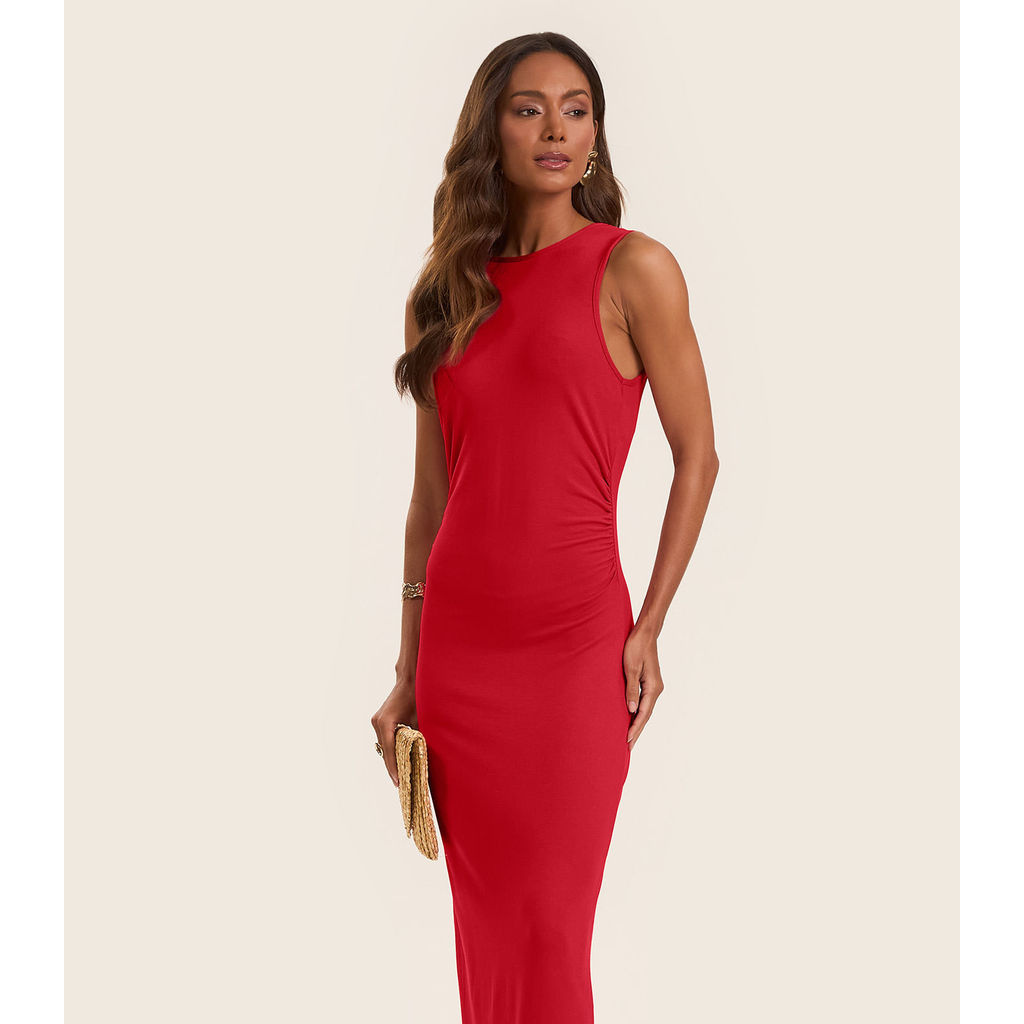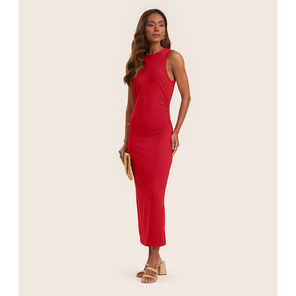 Vestido Midi em Molecotton de Viscose Rovitex Vermelho