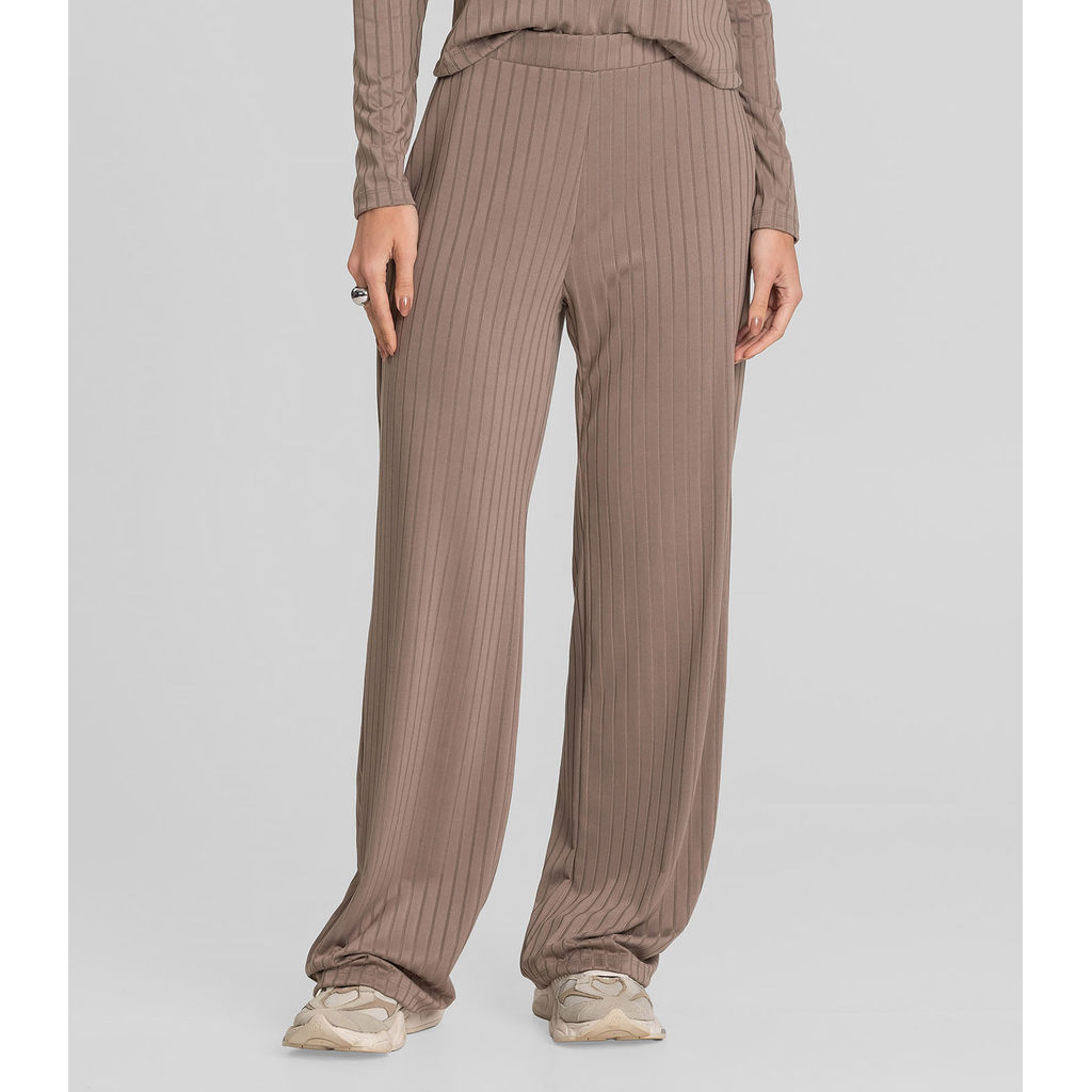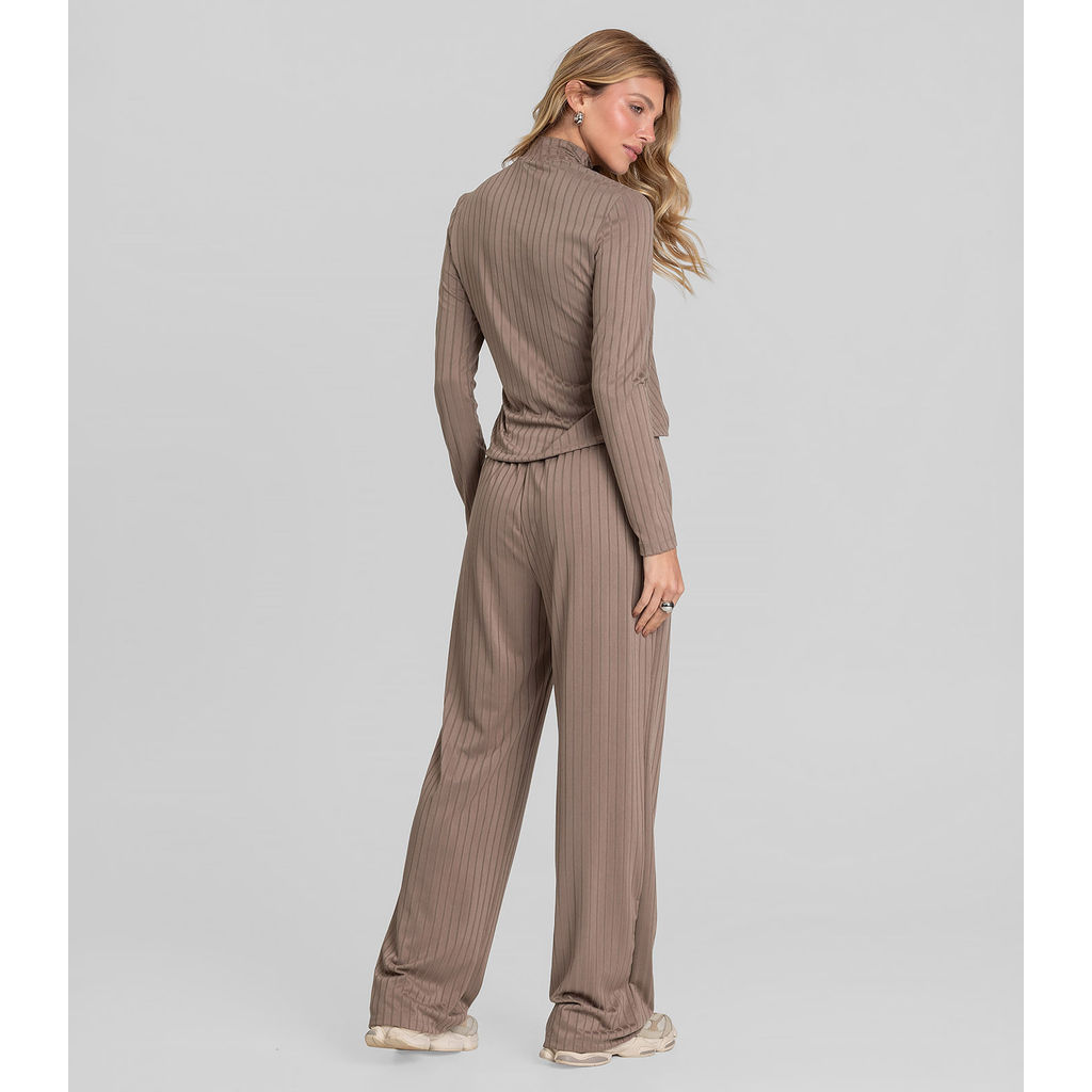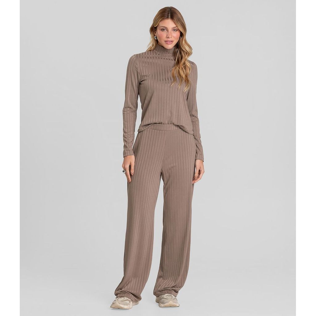 Conjunto Feminino Blusa E Calça Em Ribana Dianna Marrom