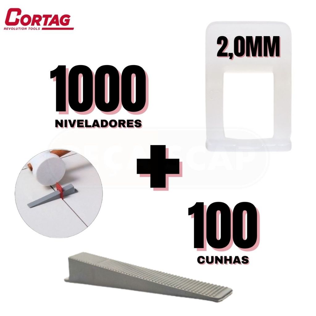 Kit 1000 Espaçadores Niveladores 1mm, 1.5mm, e 2mm Cortag Slim Original + 100 Cunhas Cortag Slim