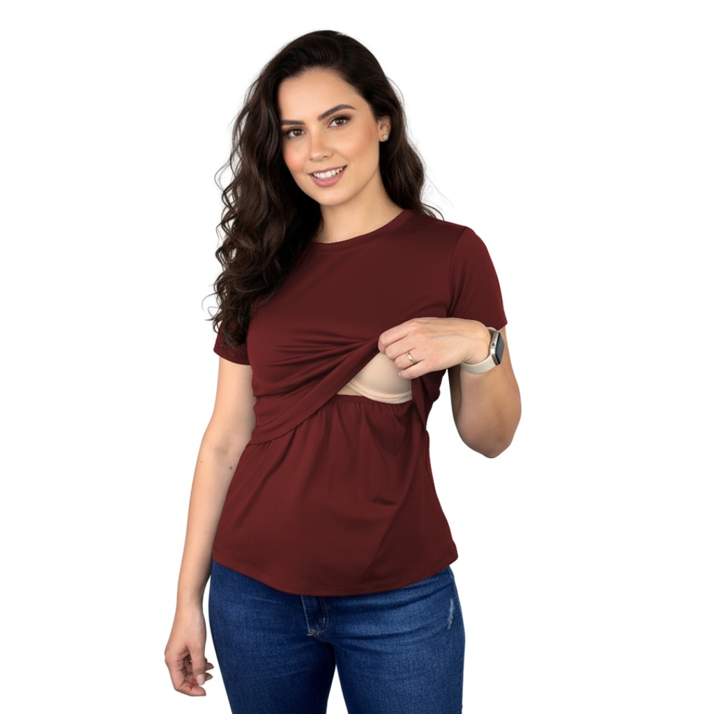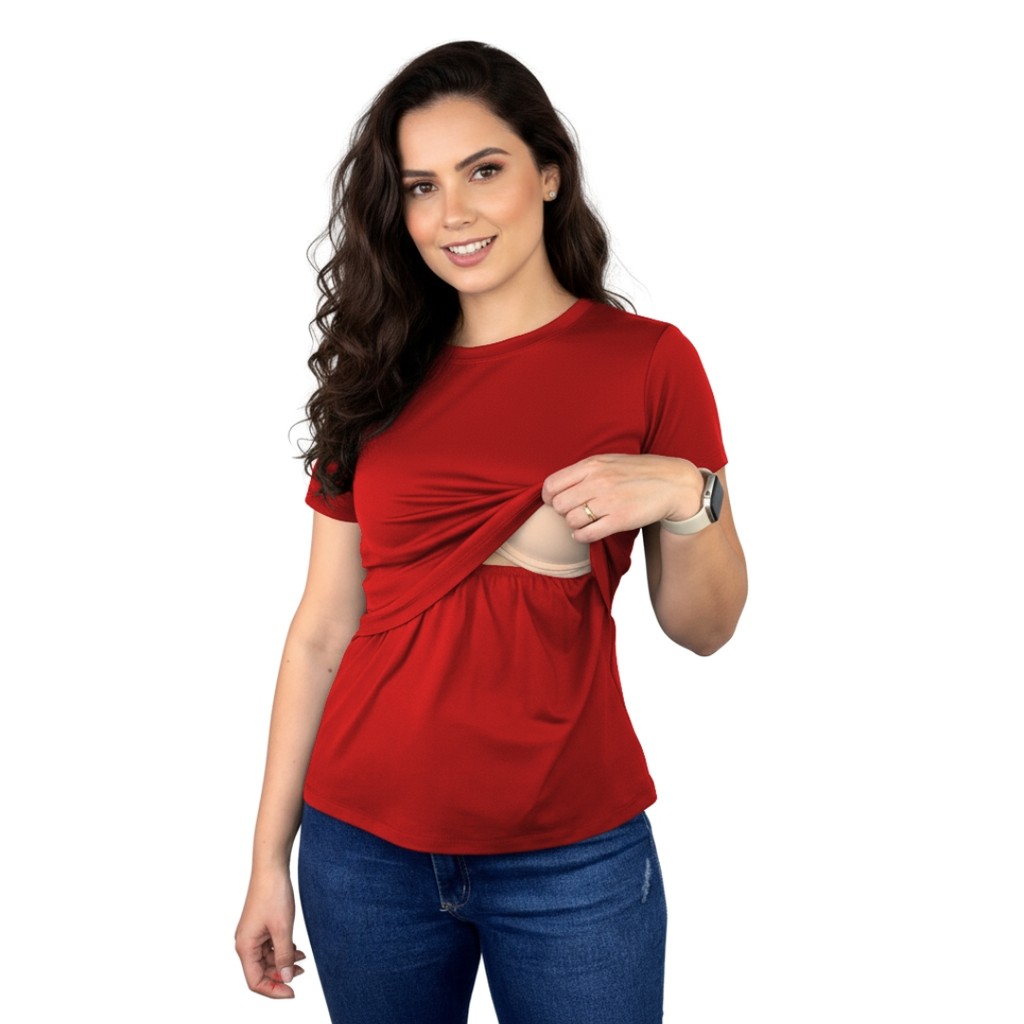 Blusa Amamentação Diversas Cores Lisa Camiseta Manga Curta T-shirt Moda Gestante Grávida