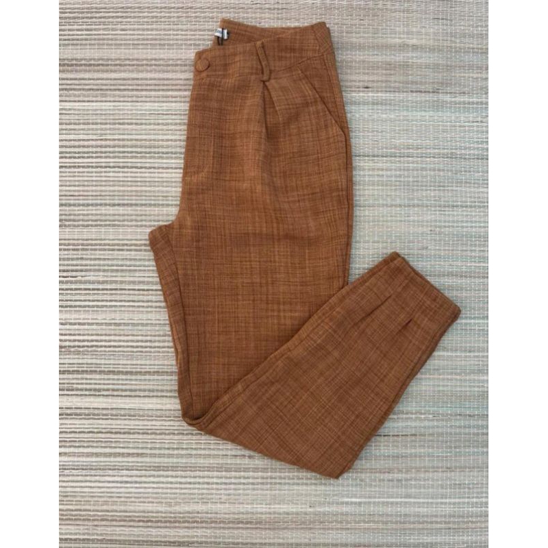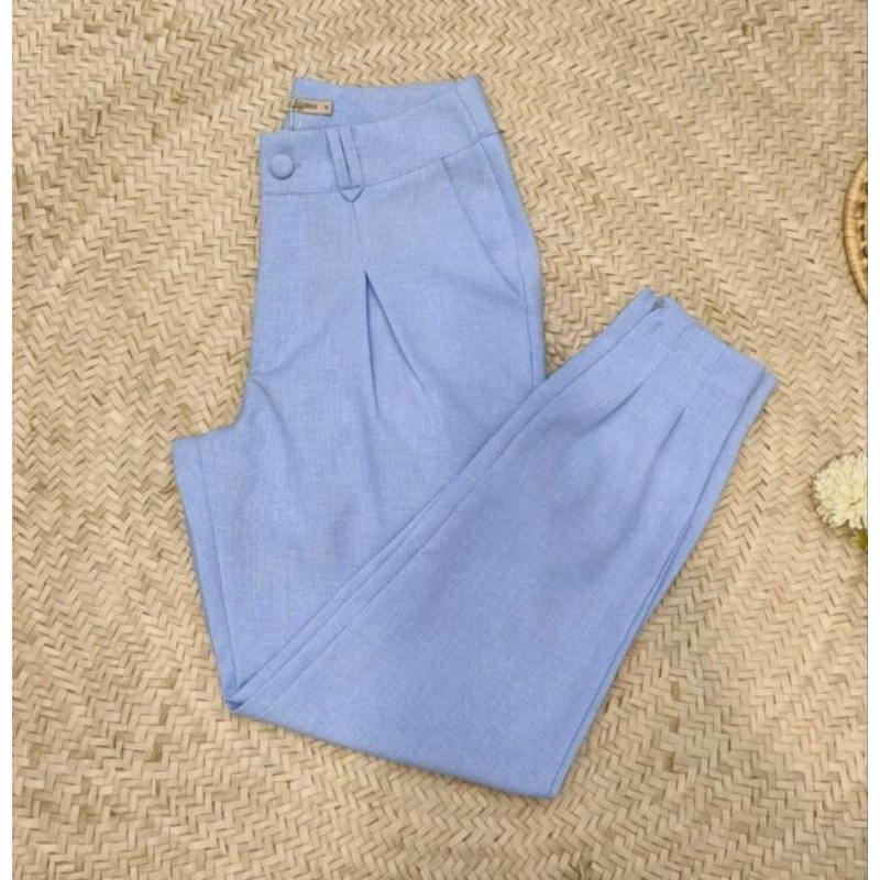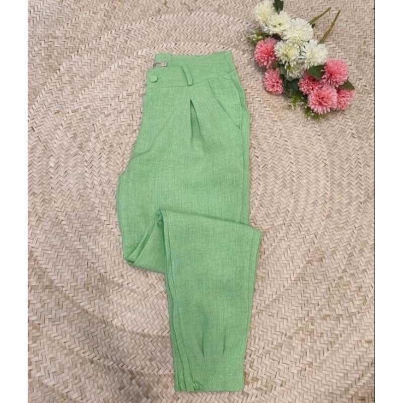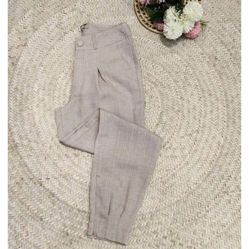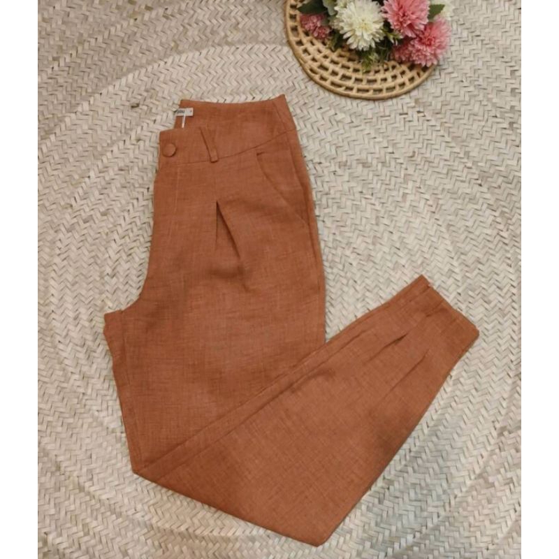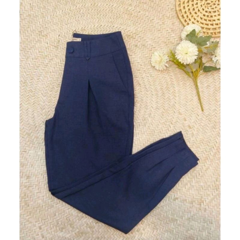 Calça Imitação de Linho Com Ziper na Perna