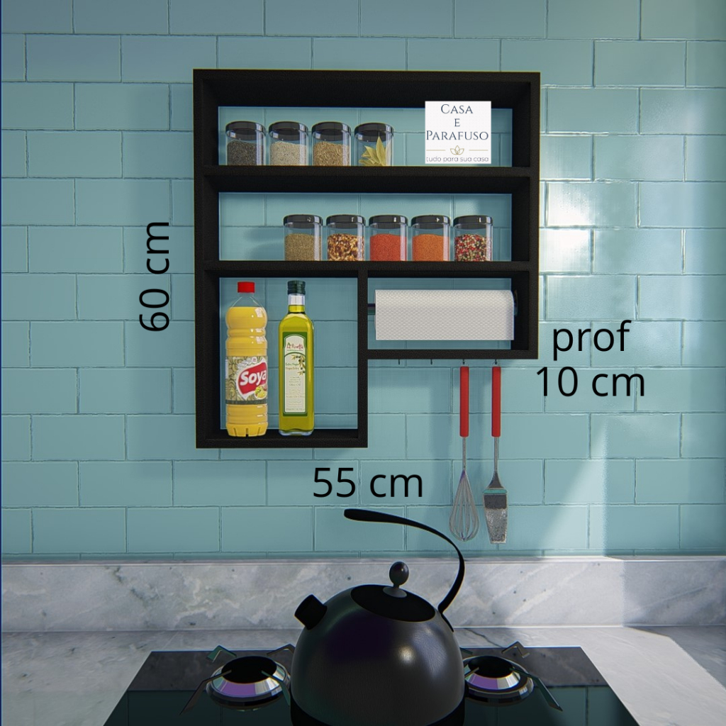 Porta tempero Nicho Prateleira Organizador e Papel toalha - 13