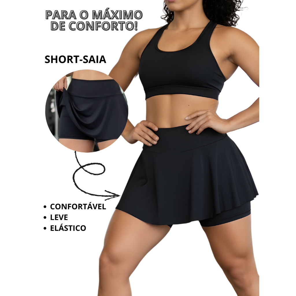 Shorts Saia Academia Fitness Cintura Alta Tapa Bumbum Bailarina Rodada Suplex Premium P ao GG