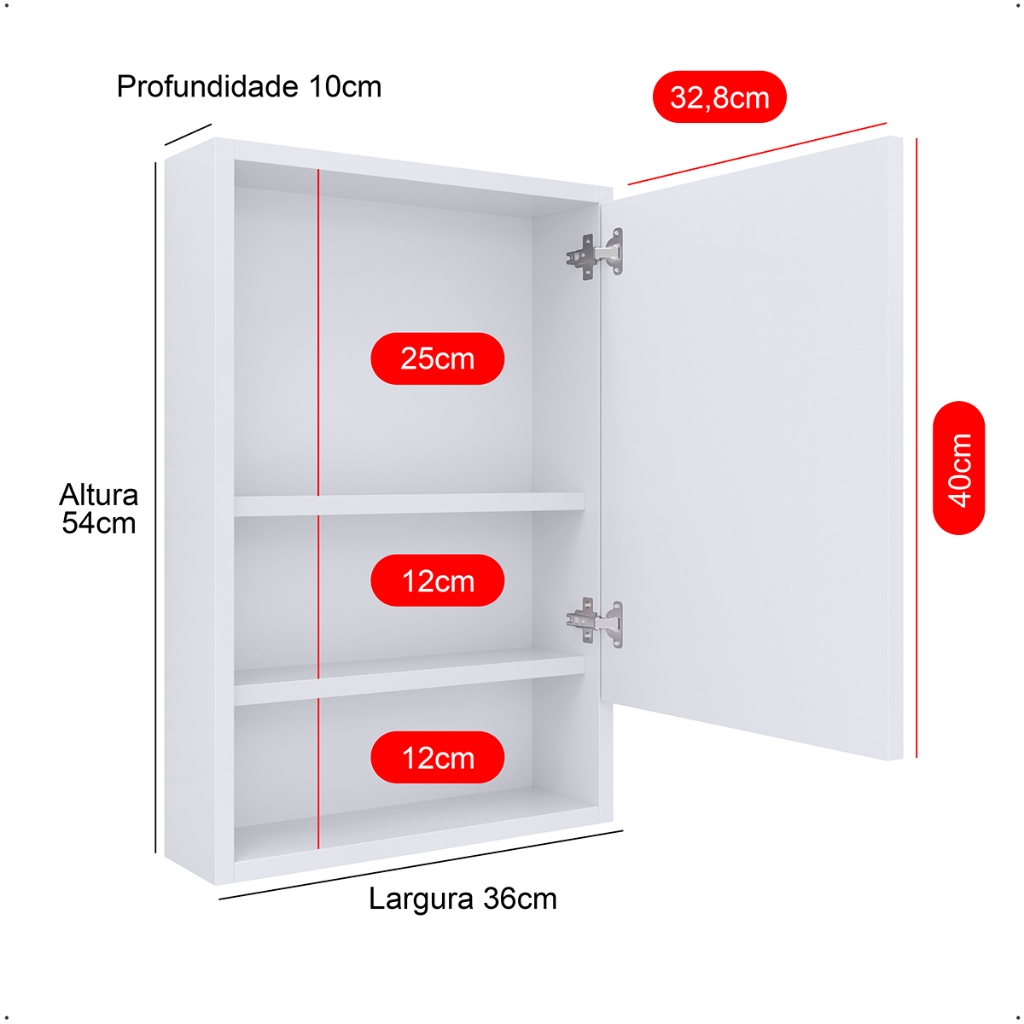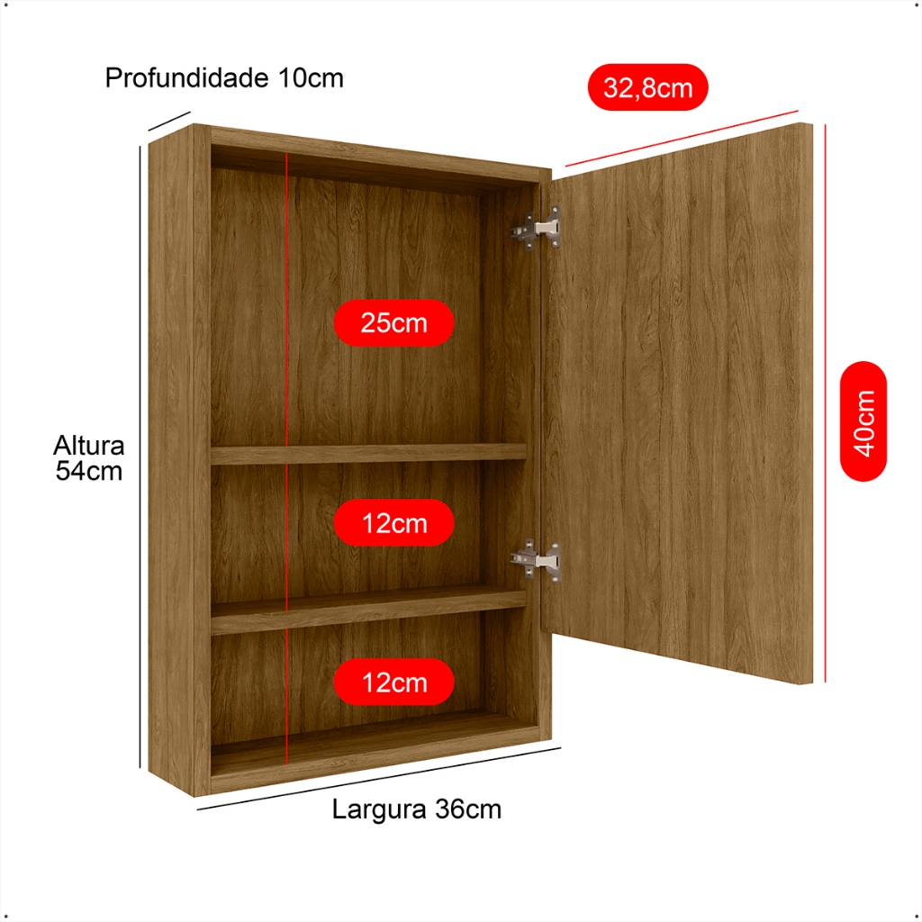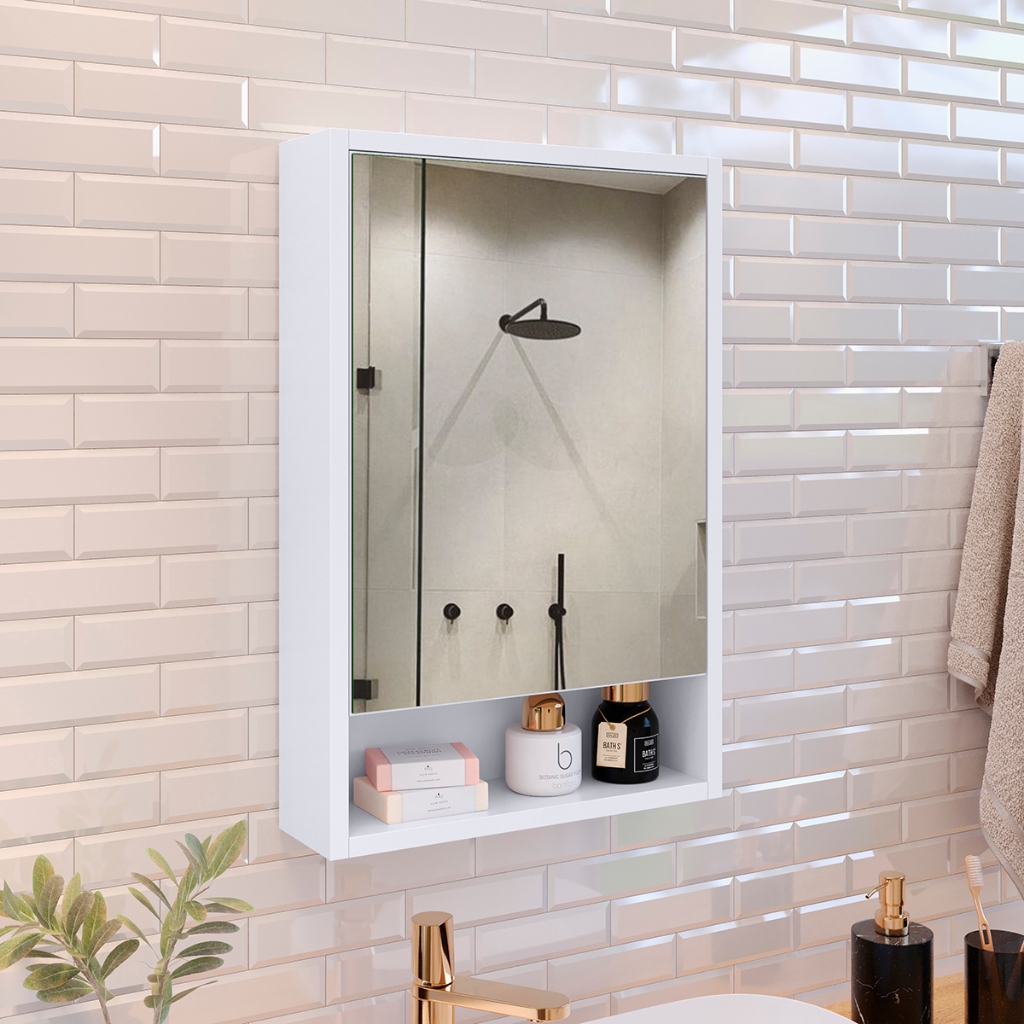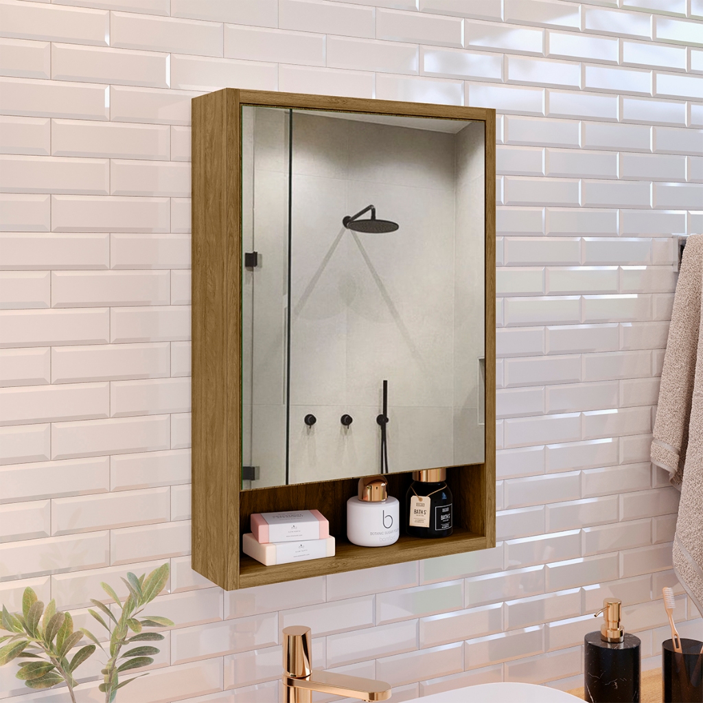 Armário Banheiro Aéreo 1 Porta Espelho Espelheira Gaia