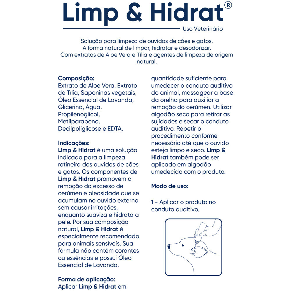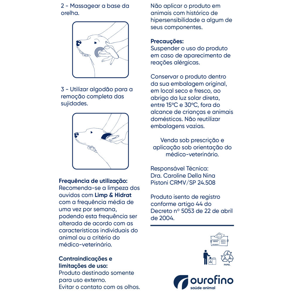 Auritop 15g Mais Limp & Hidrat 100ml Cães e Gatos - Ourofino